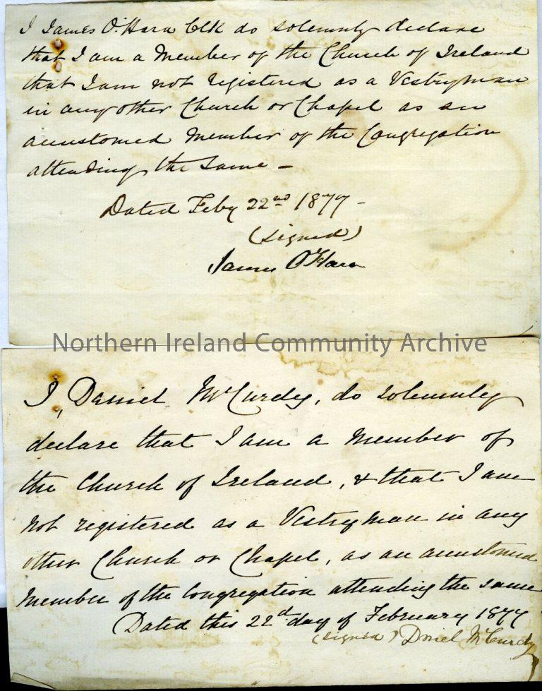 12 declarations to the Church of Ireland, 22nd February 1877