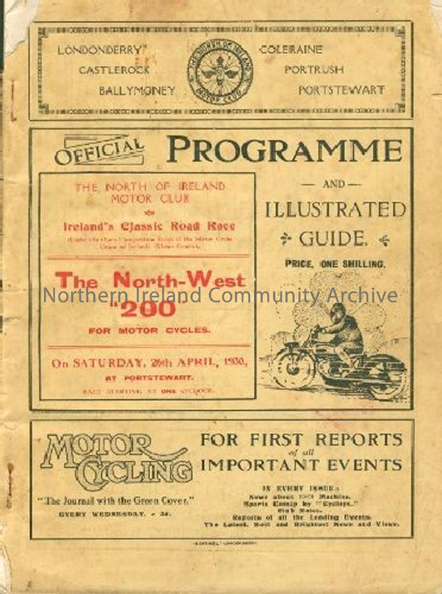 NW200 Programme 1930 The famous North West 200 event began in 1929. Ballymoney Museum has an almost complete collection of programmes dating from 1930.