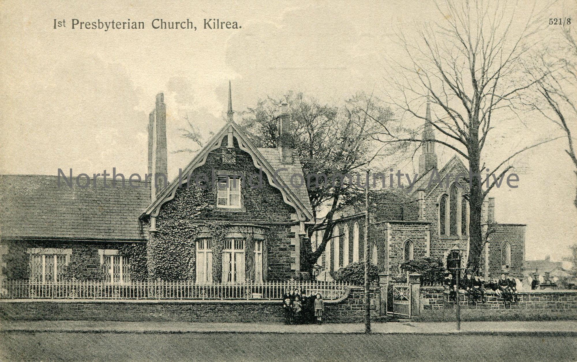1st Presbyterian Church, Kilrea. A group of children can be seen standing at a wall in the centre.