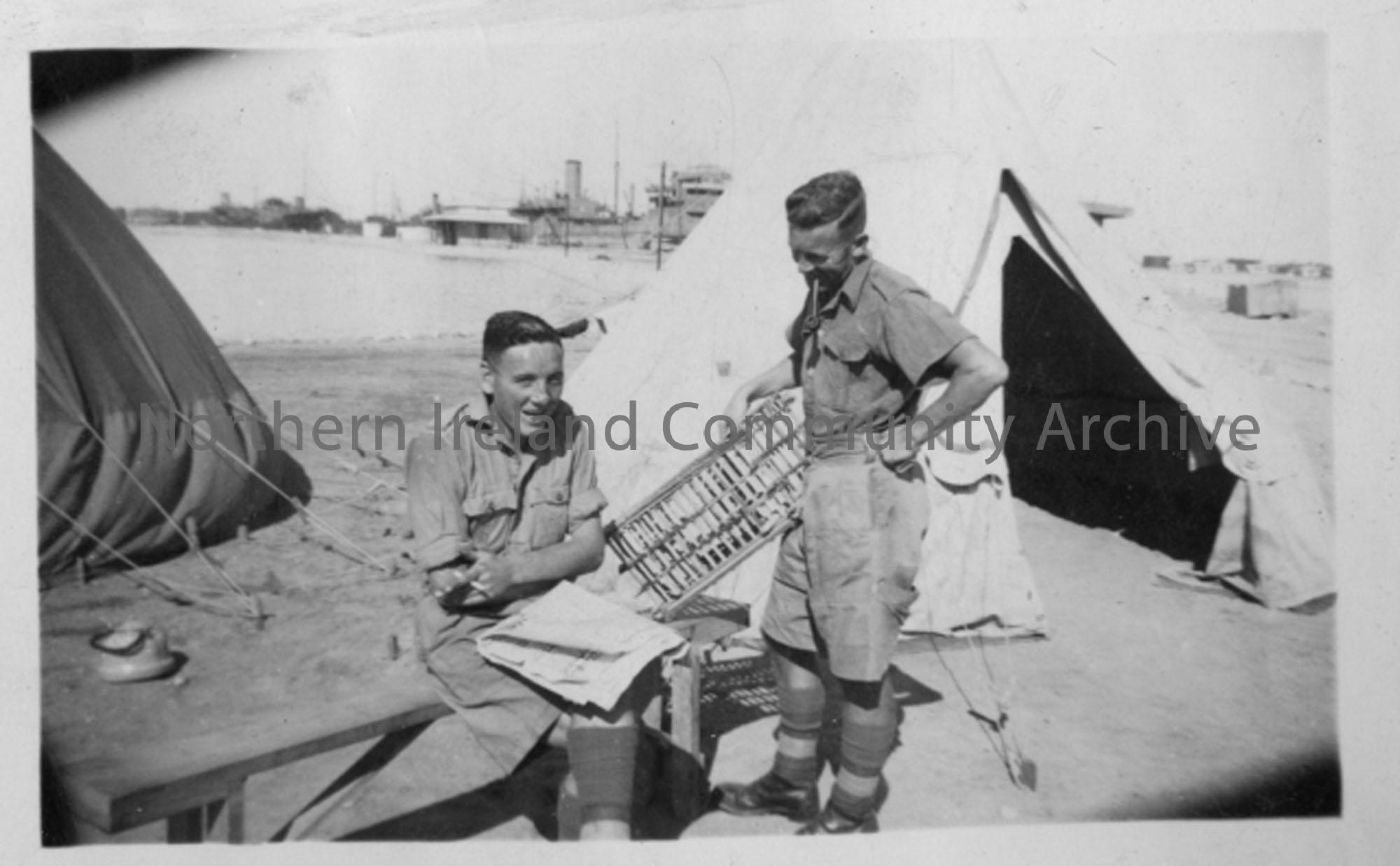 Gunner Jock Adams and Sgt W McDonald at the Suez Canal Camp.