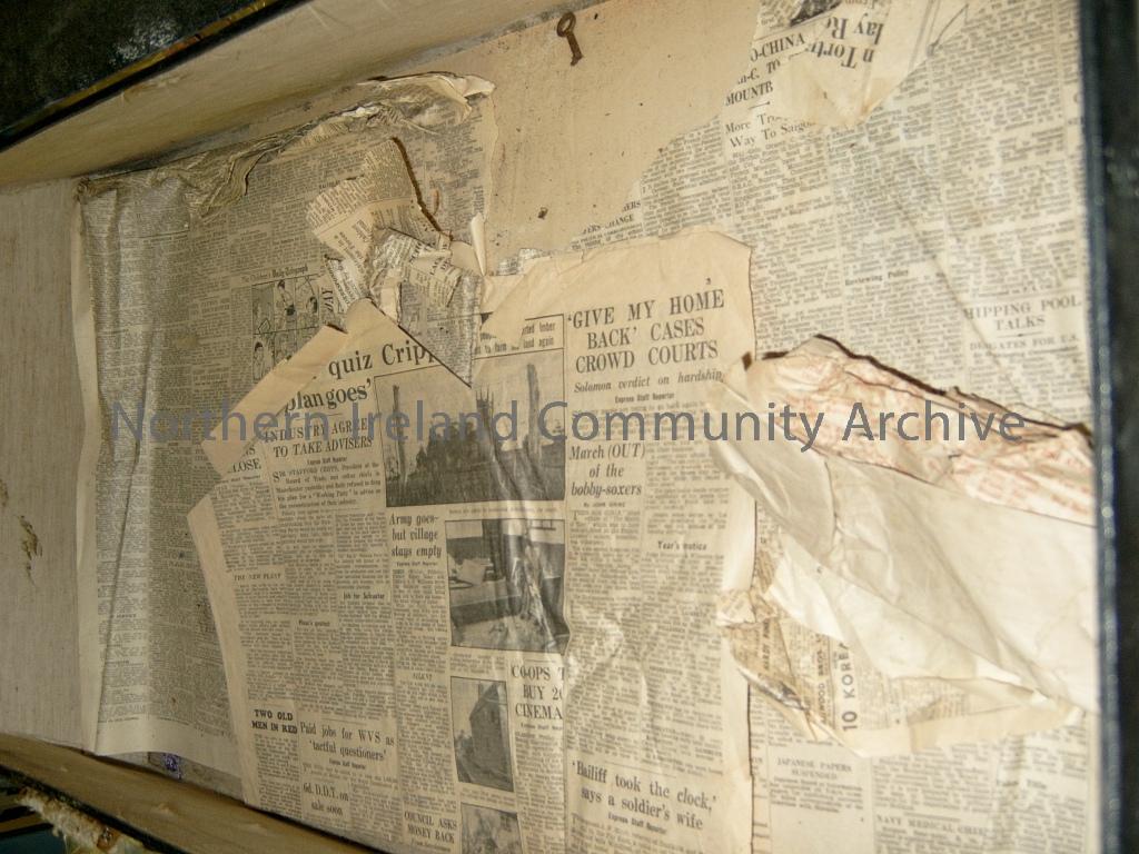 2 x sheets of newspaper used to wrap the contents of the chest originally. 1 x sheet from the Daily Express Sept. 29 1945. 1 x sheet Daily Telegraph and Morning post Sept 29 1945.