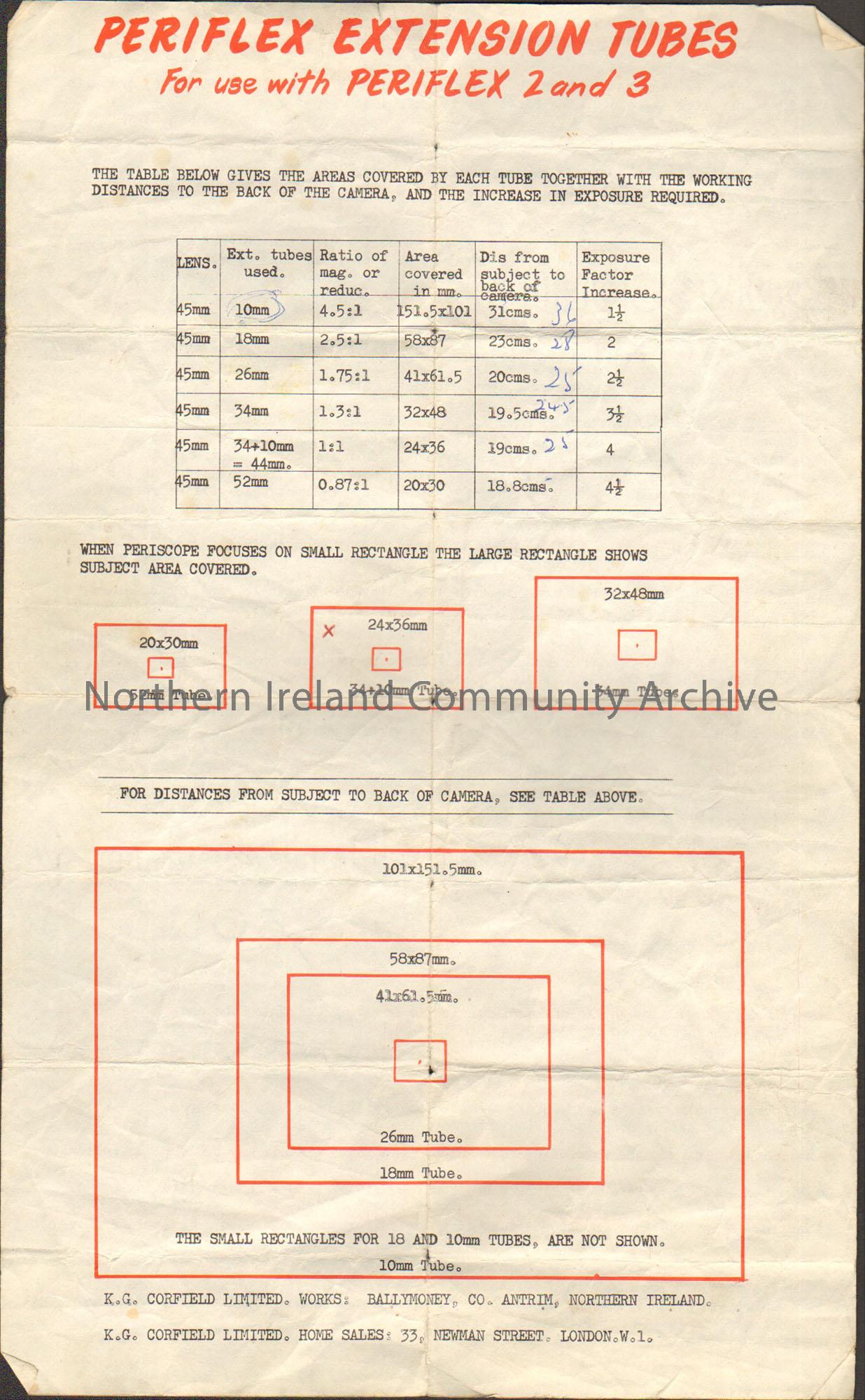 3 pages of instructions, tables and diagrams for using different types of Periflex Extension Tubes.