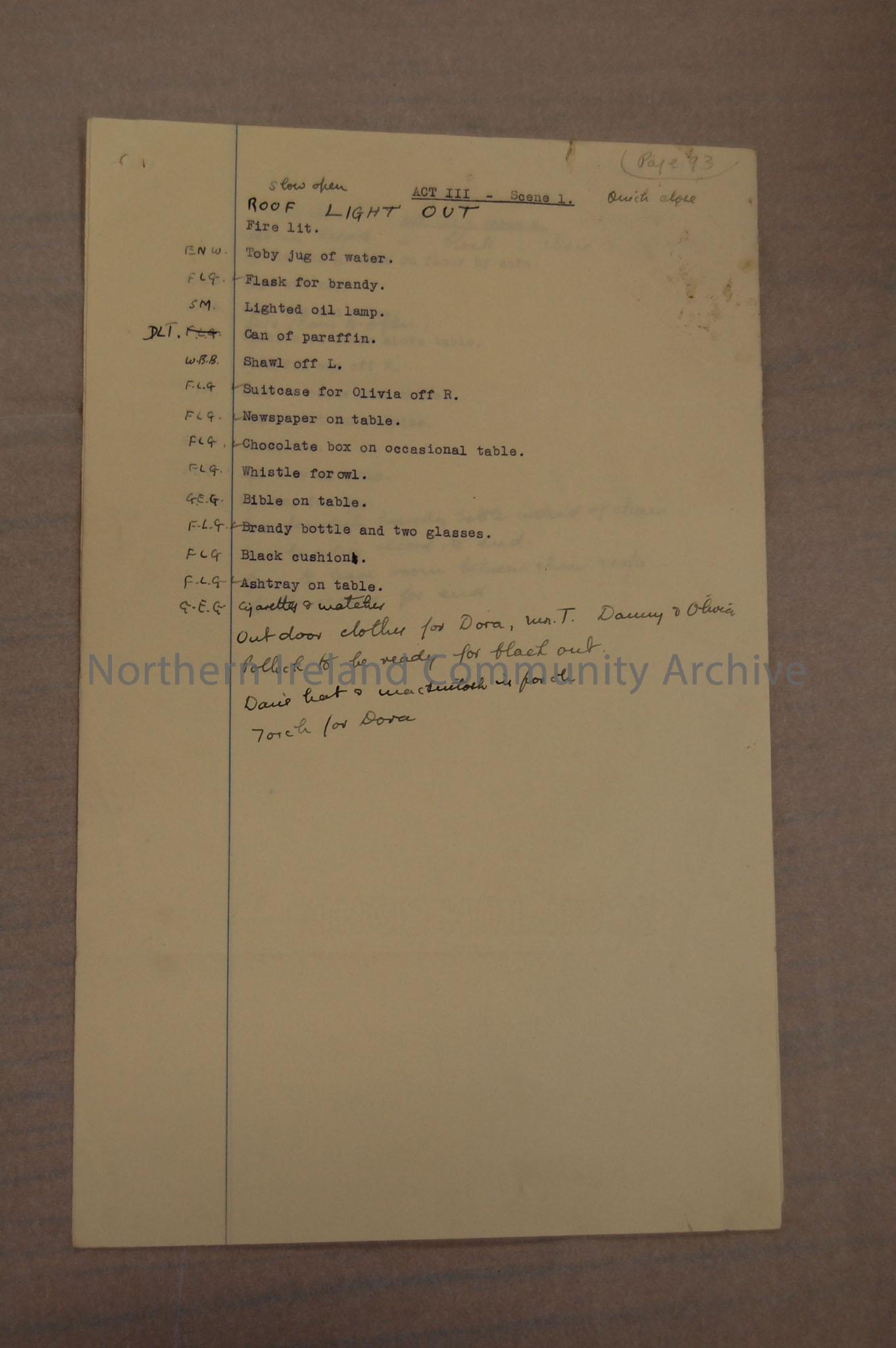 5 pages of typed set directions and props for production of Night Must Fall – 2014.45 (3)