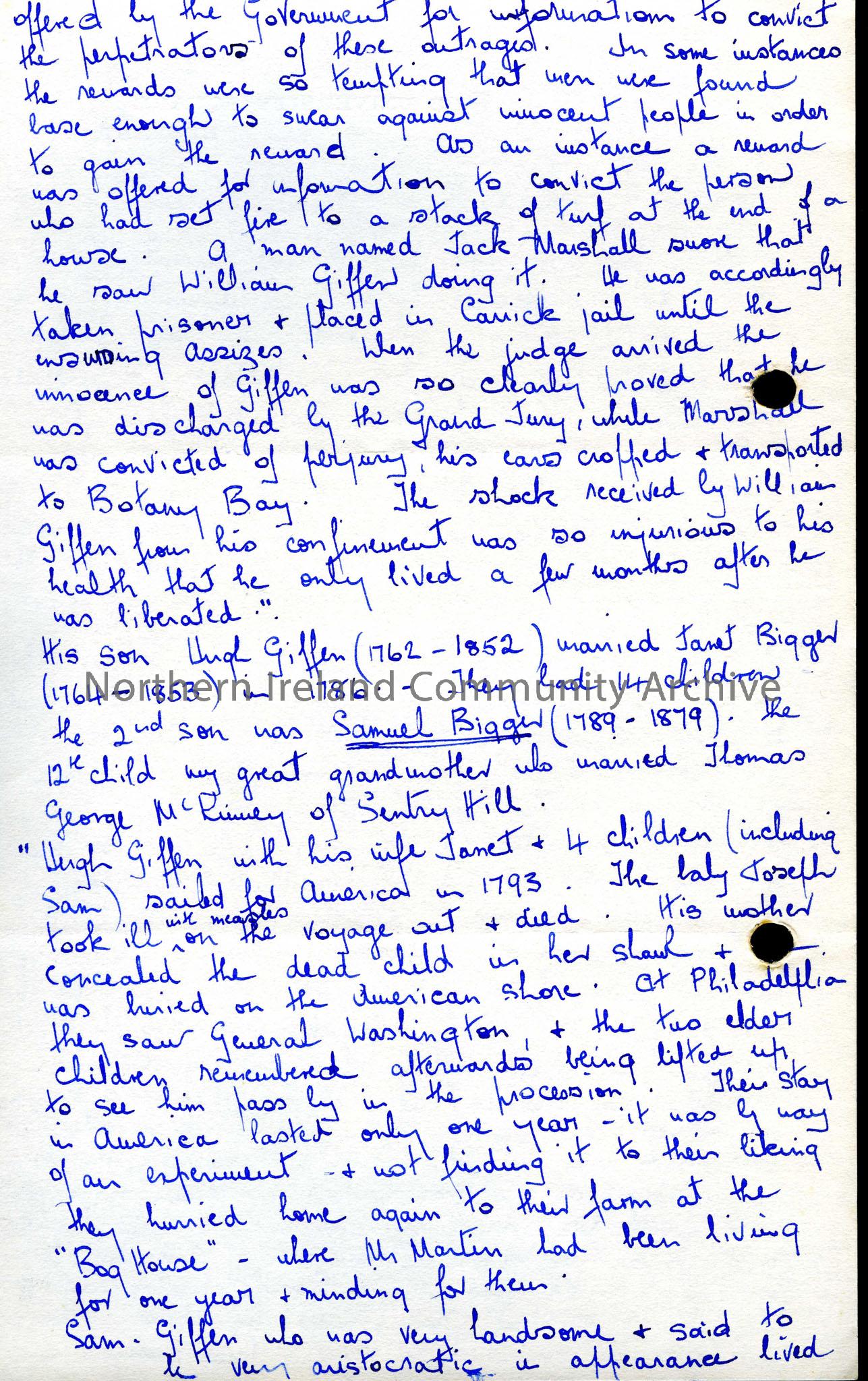 A letter giving the history of the Giffen family who came to Ulster from Scotland about the year 1730. There is a lot of information contained in the…