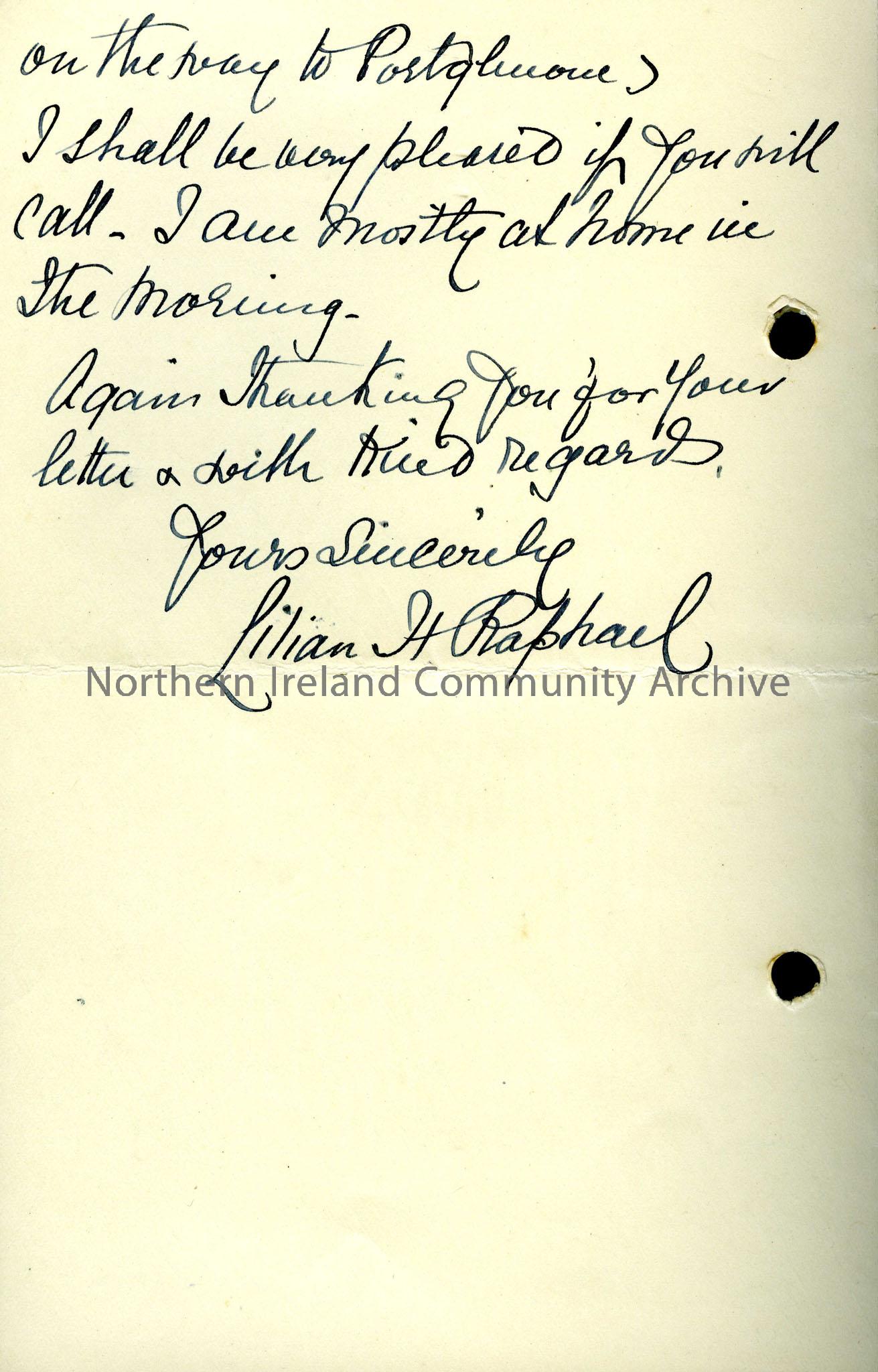 A letter thanking Sam Henry for his. The writer mentions antiquarians from the Ballymena area that she has known: Canon Granger of Broughshane, George…