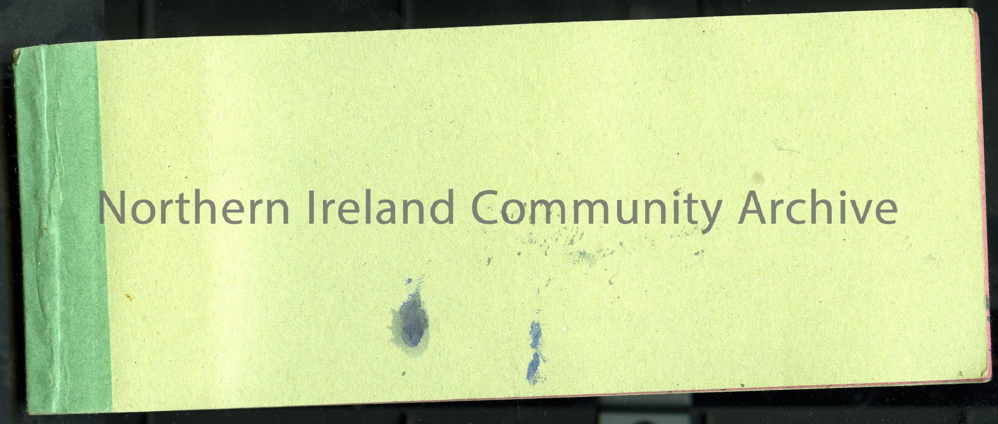 A light green chequebook from ‘Northern Bank Ltd’, ‘Portrush’. Chequebook no. ‘B14901’. On front in pen, ‘No.3 a/c…..1945-46-47’. Inside only cheque… – scan439