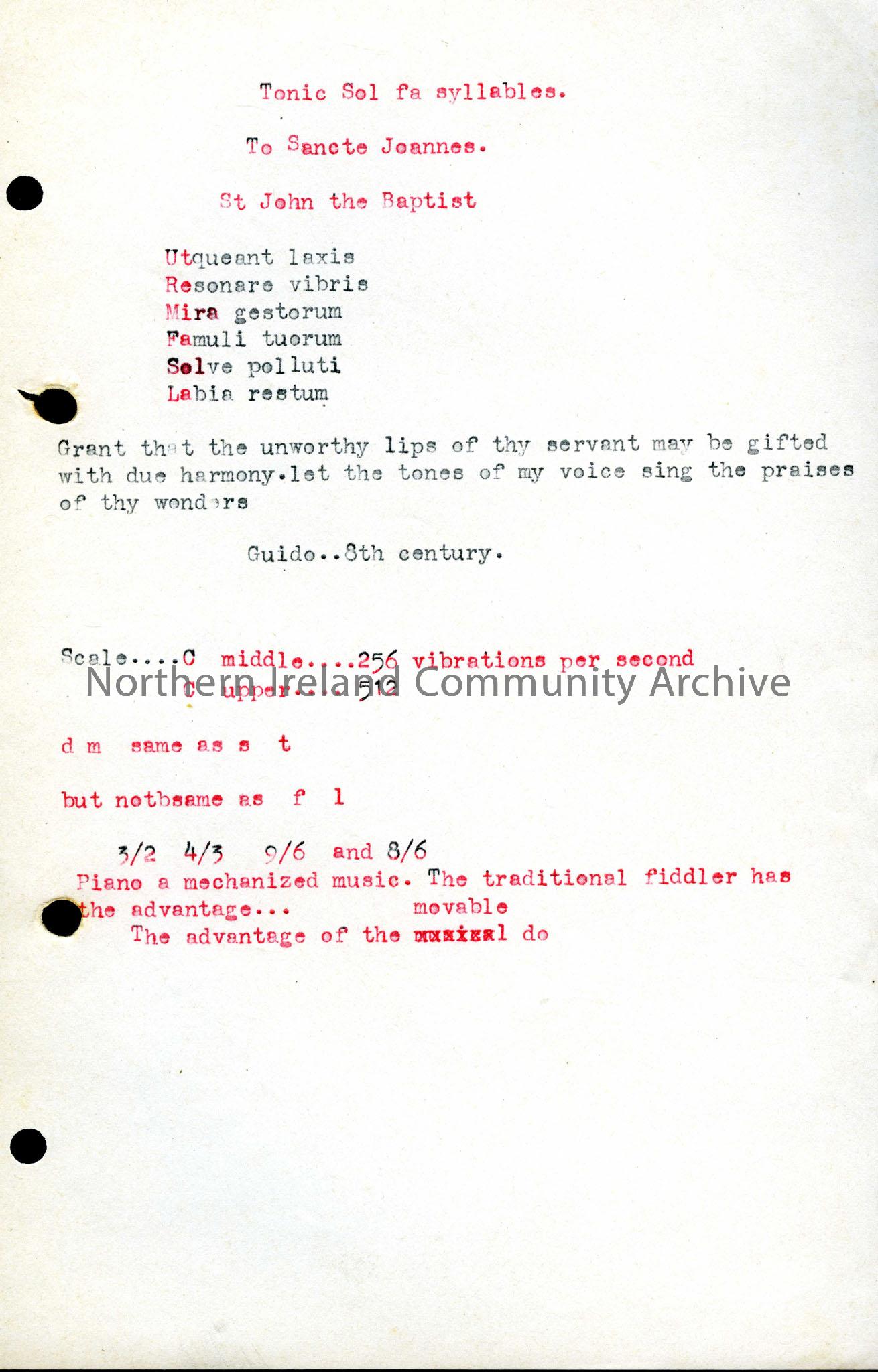 A note entitled "Tonic Sol fa syllables". It gives a poem in Latin with its translation, attributed to Guido and other musical references.