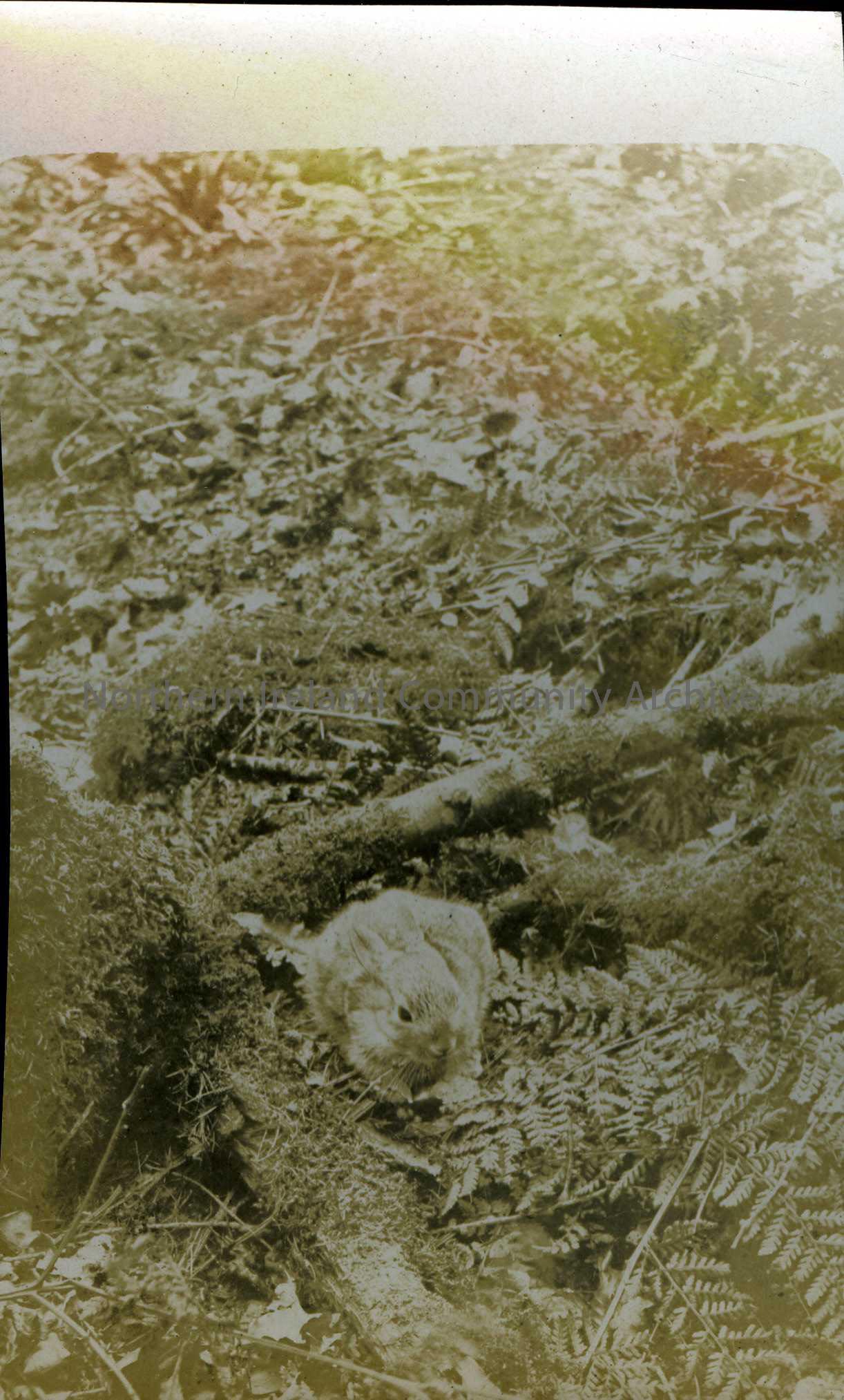 A photo of a rabbit among ferns.