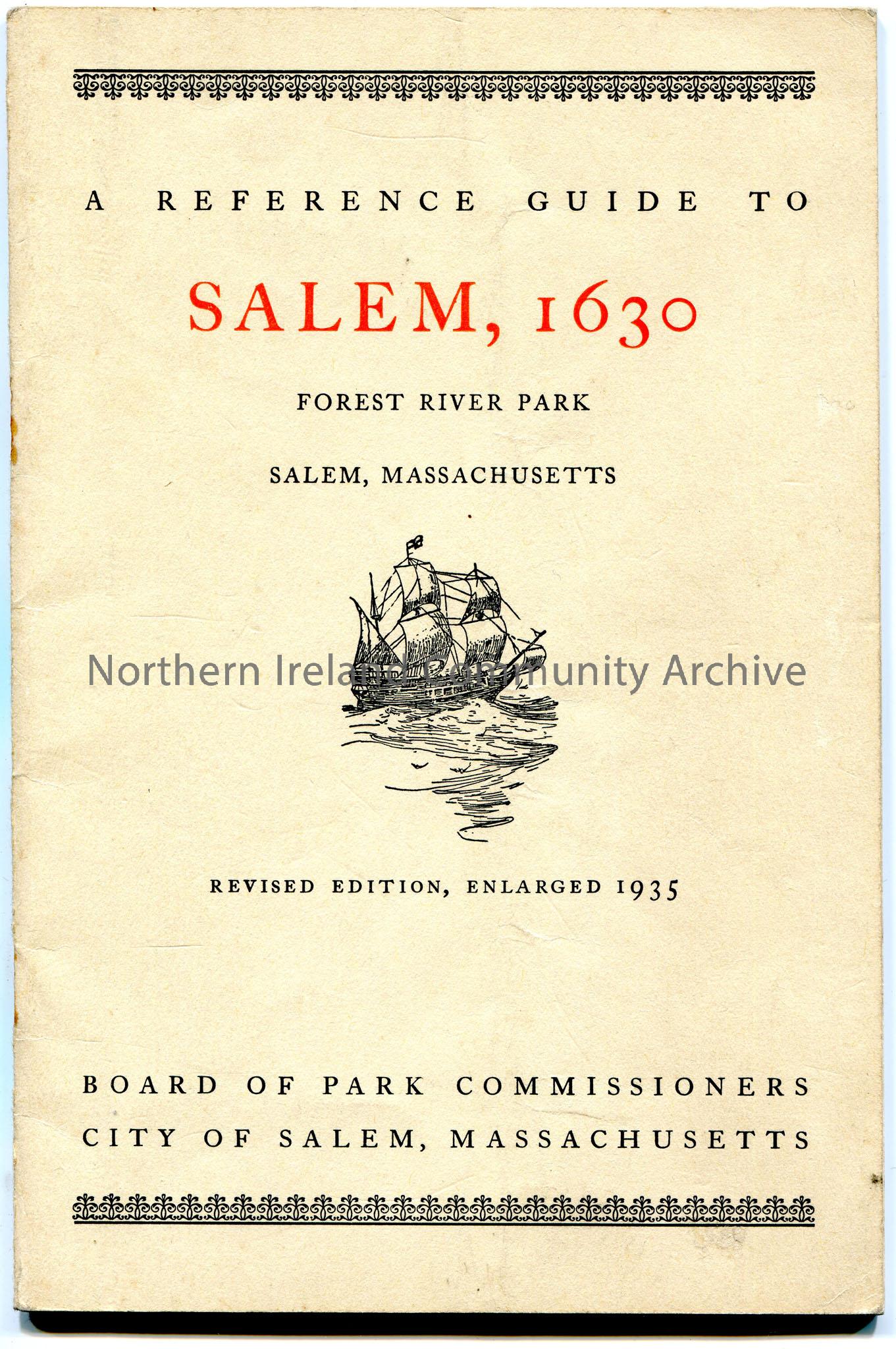 'A Reference Guide to Salem, 1630. Forest River Park, Salem, Massachusetts'. Revised Edition, Enlarged 1935. Published by Board of Park Commissioners, City of Salem, Massachusetts. Contains text, photographic images and colour drawings.