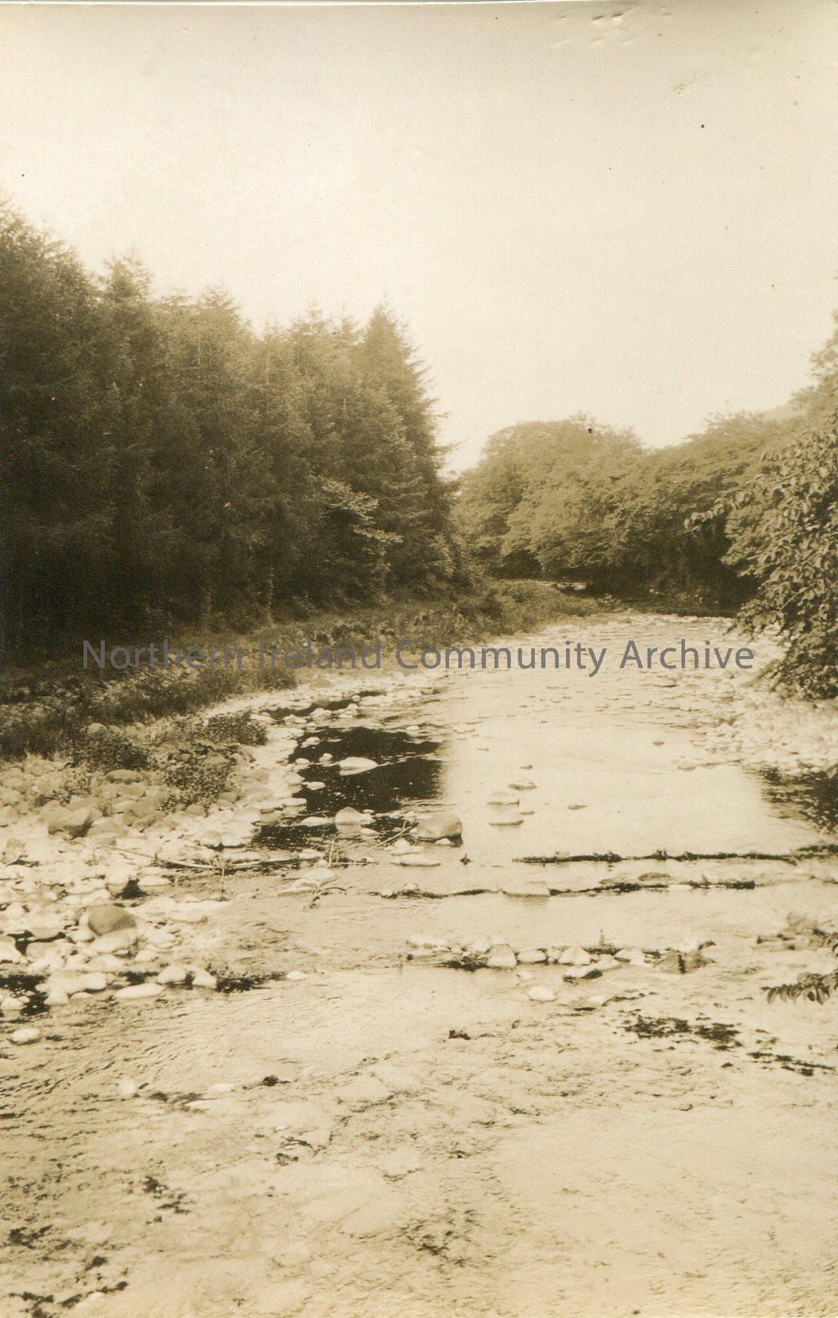 A river lined with trees on either side.