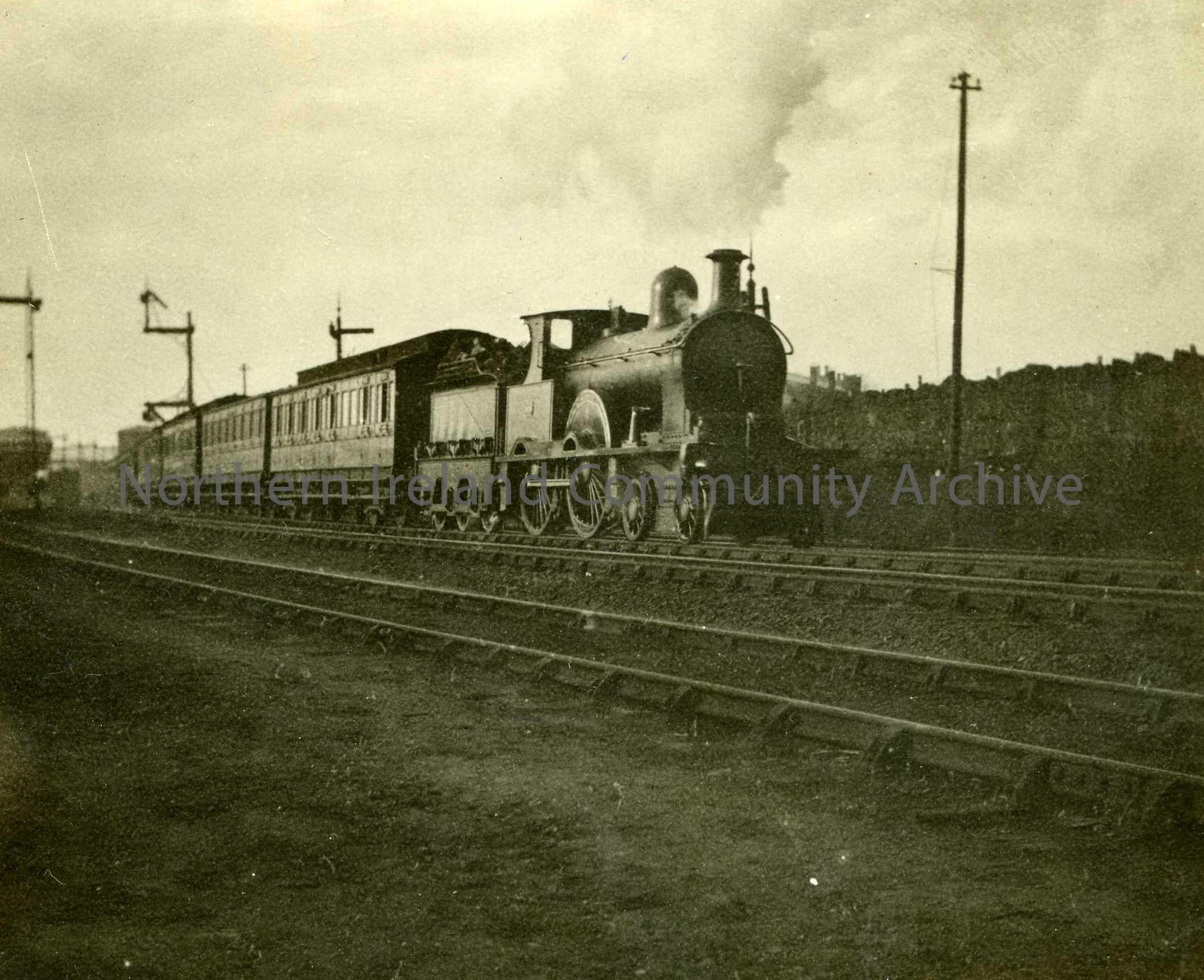 A steam train on a railway track.