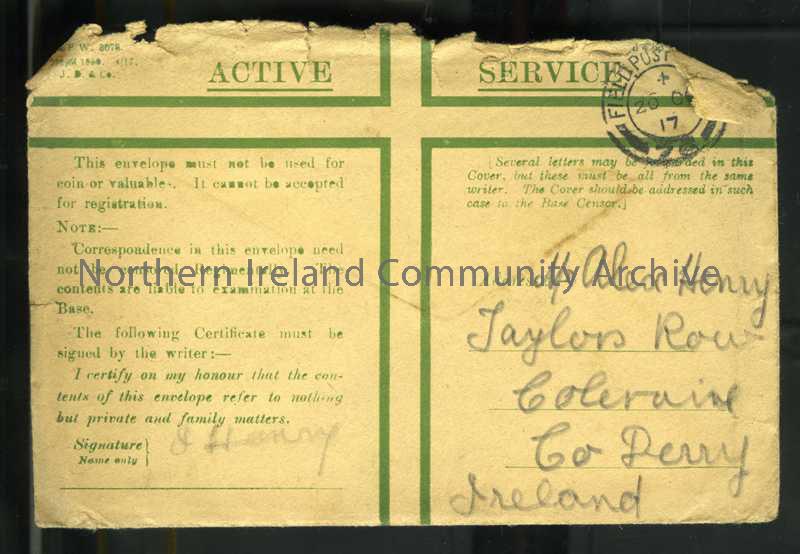 Addressed standard buff 'Active Service' envelope