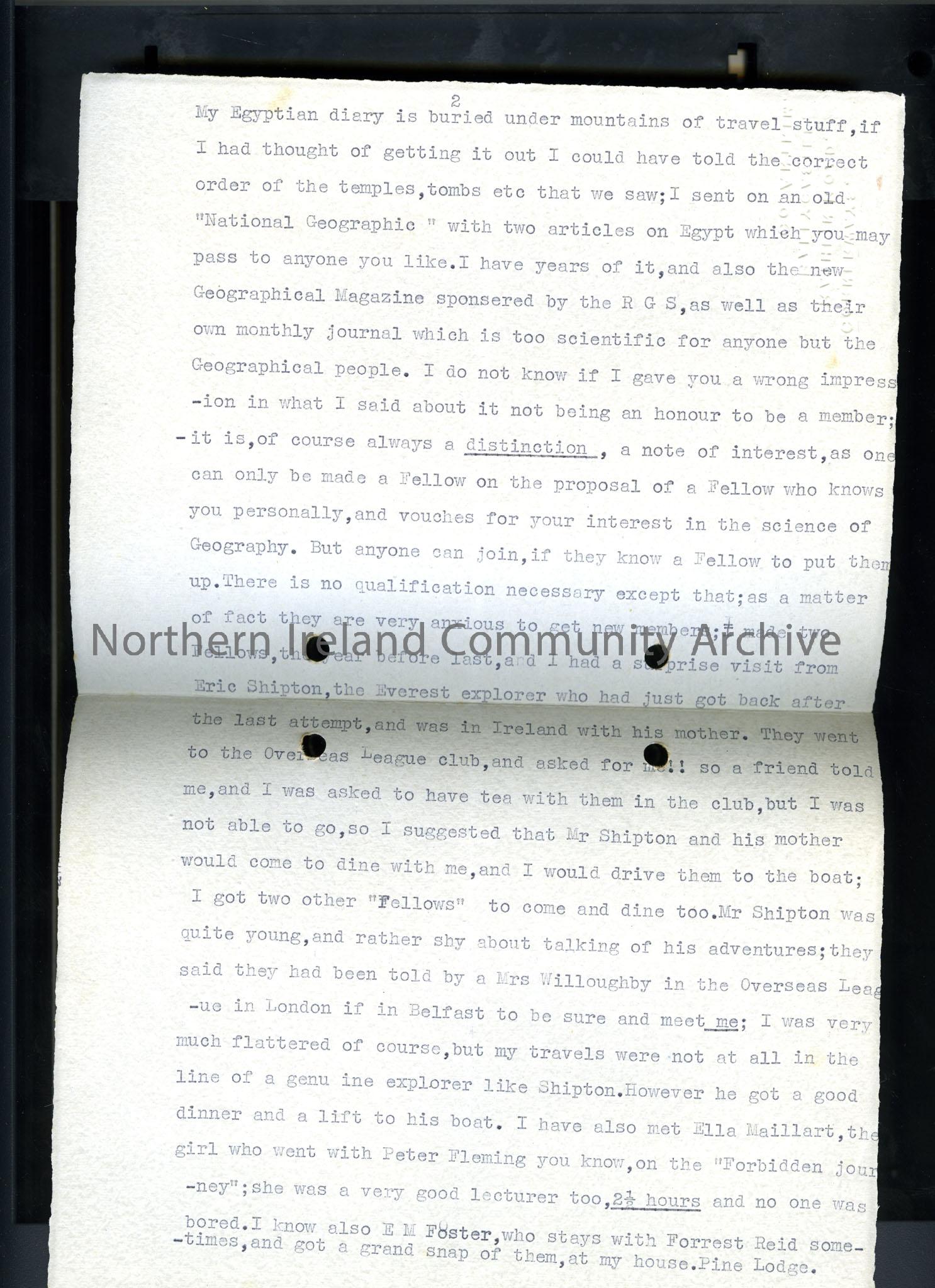Addressed to Mr Henry from Grace L. Morrow, Ballycastle, dated 15th September 1940. Re: Coleraine Chronicle with an article about St Patrick’s and Sam… – Scan173B