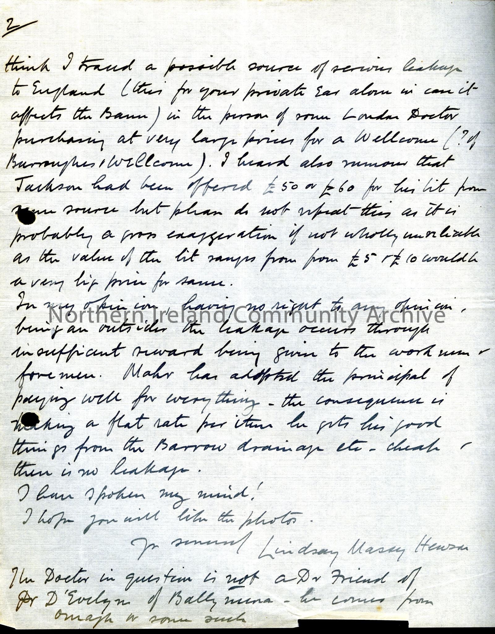 Addressed to Mr Henry from Lindsay Massy Heuson, The Vicarage, Carbury, Co. Kildare, dated 7th October? 1933. Re: Mr Lowry’s, Mr Glassey’s and Sam’s … – Scan196