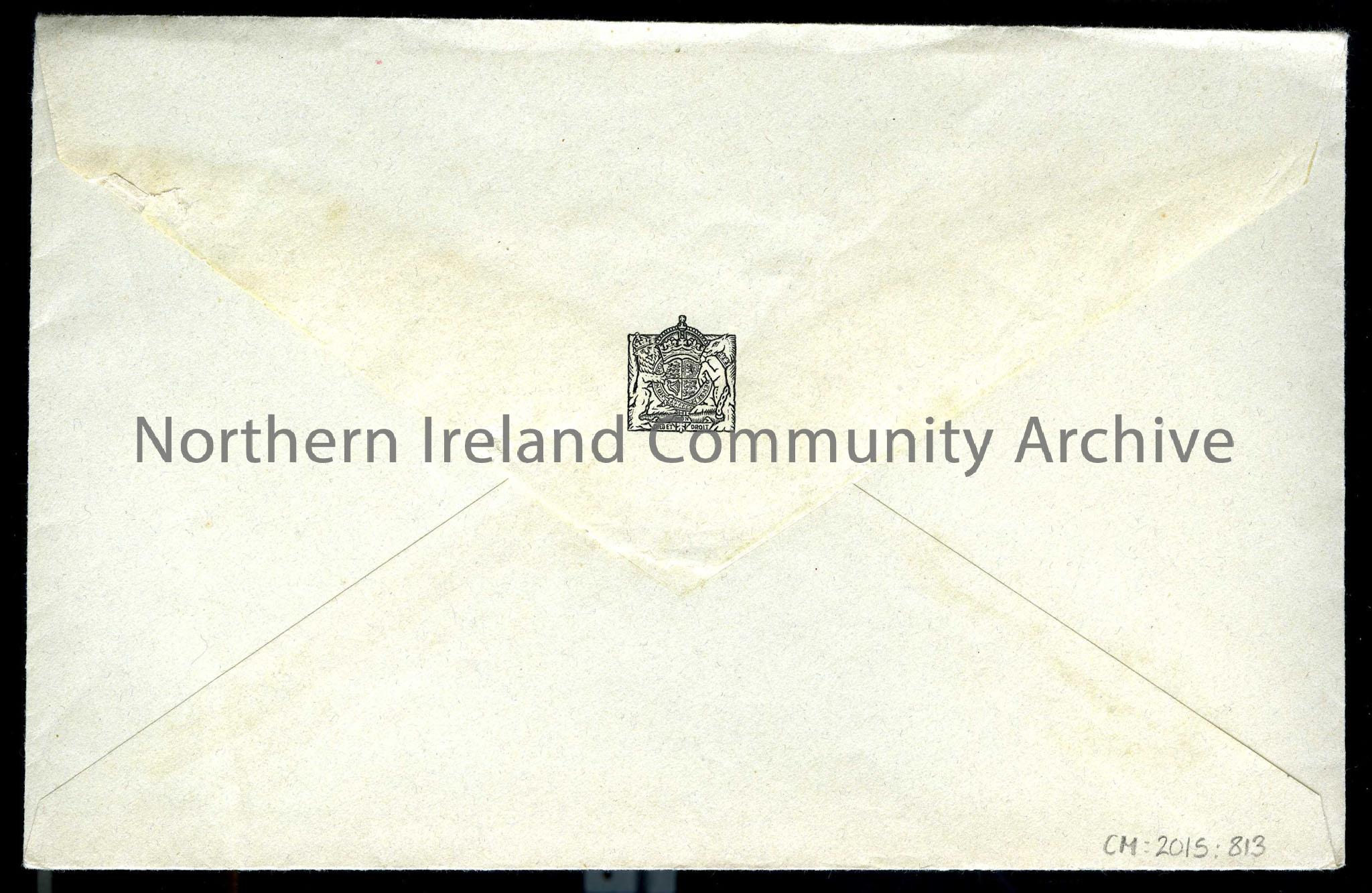 Addressed to Mr. James McCrory. Envelope that CM:2015:812 - letter of sympathy from the King came in.