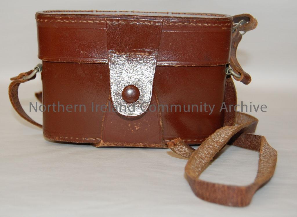 Agfa 35mm camera. Metal and plastic camera body with brown leather cover. Made in Germany. – 2010.381 (4)