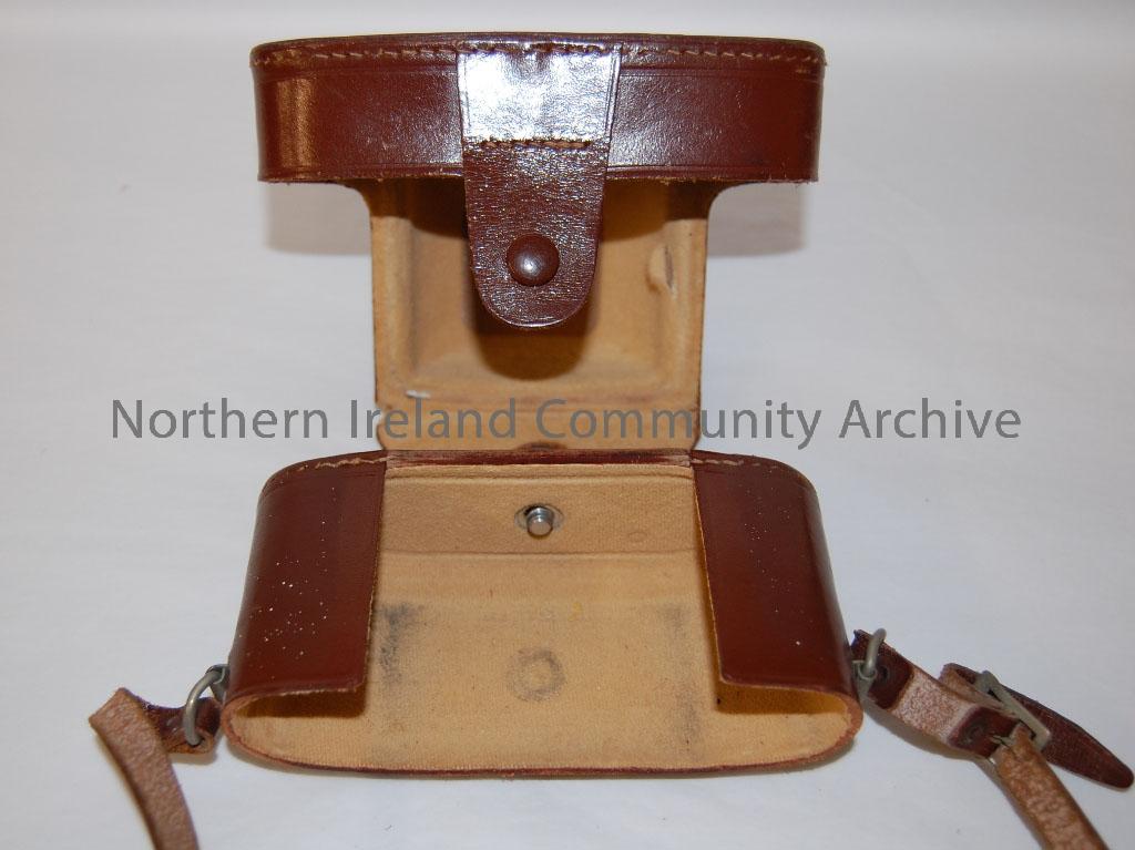 Agfa 35mm camera. Metal and plastic camera body with brown leather cover. Made in Germany. – 2010.381 (5)