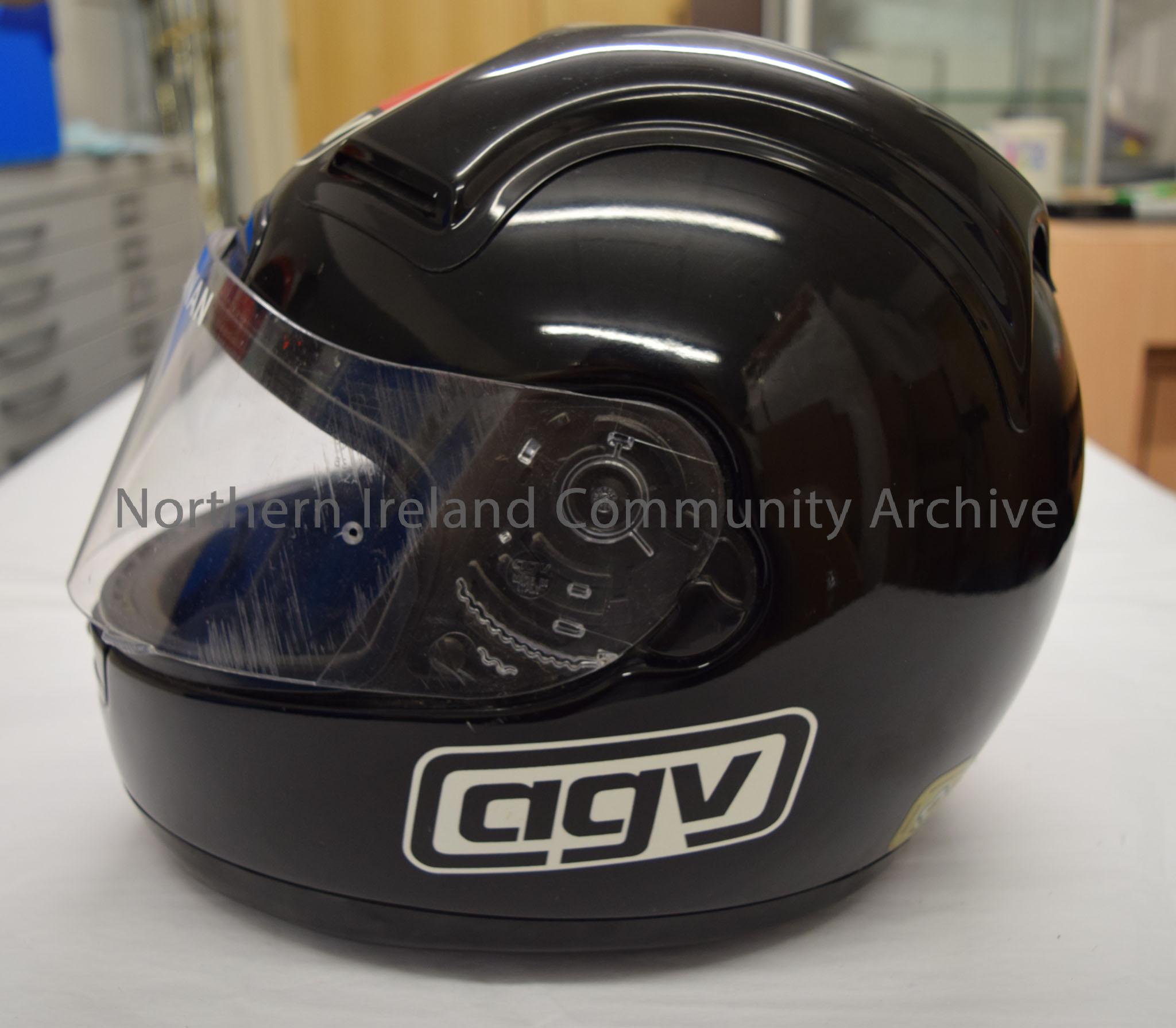 AGV motorcycle helmet belonging to Philip Drennan. Plain black