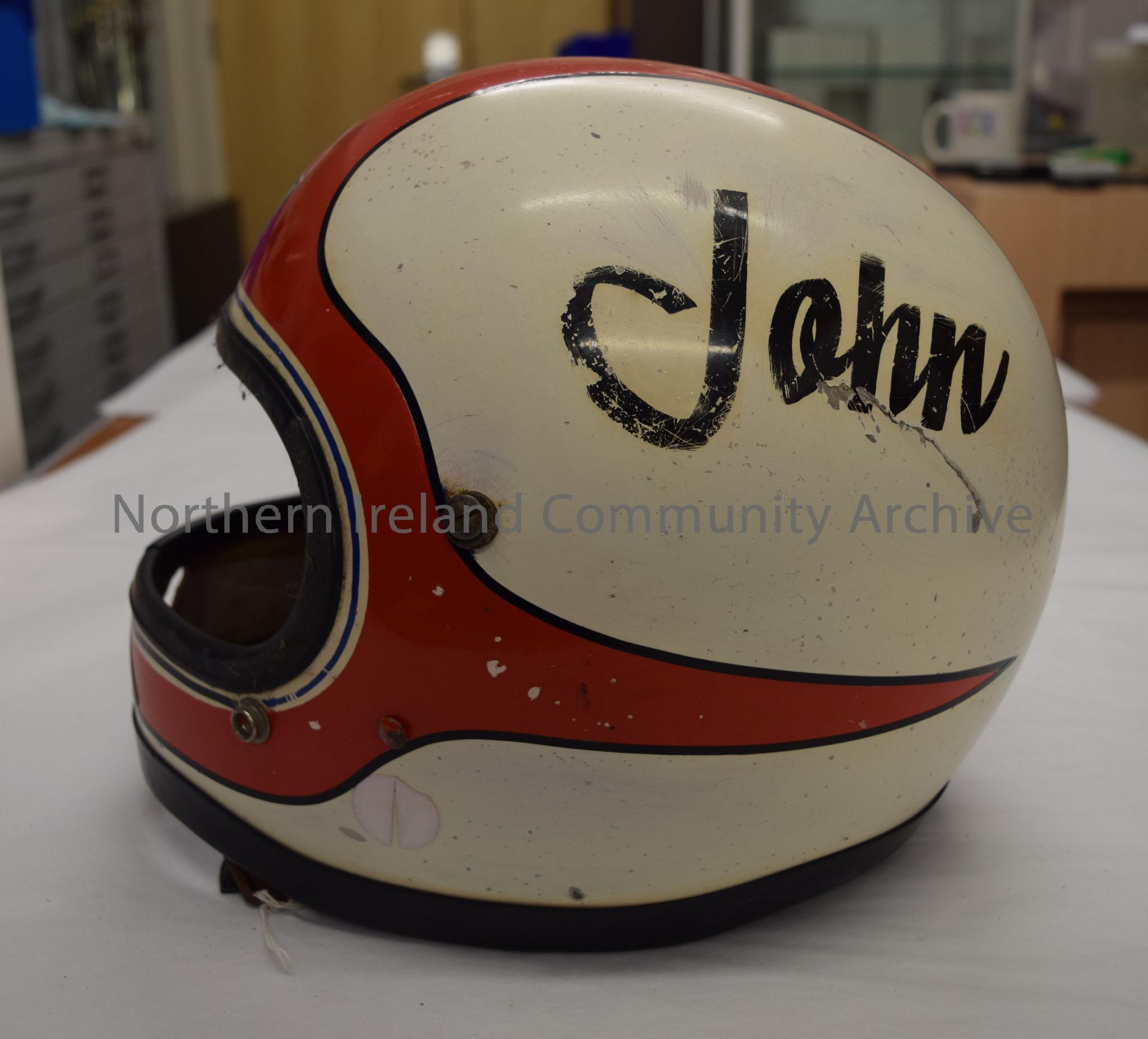 Arai motorcycle helmet belonging to Jeff Shaw. ...