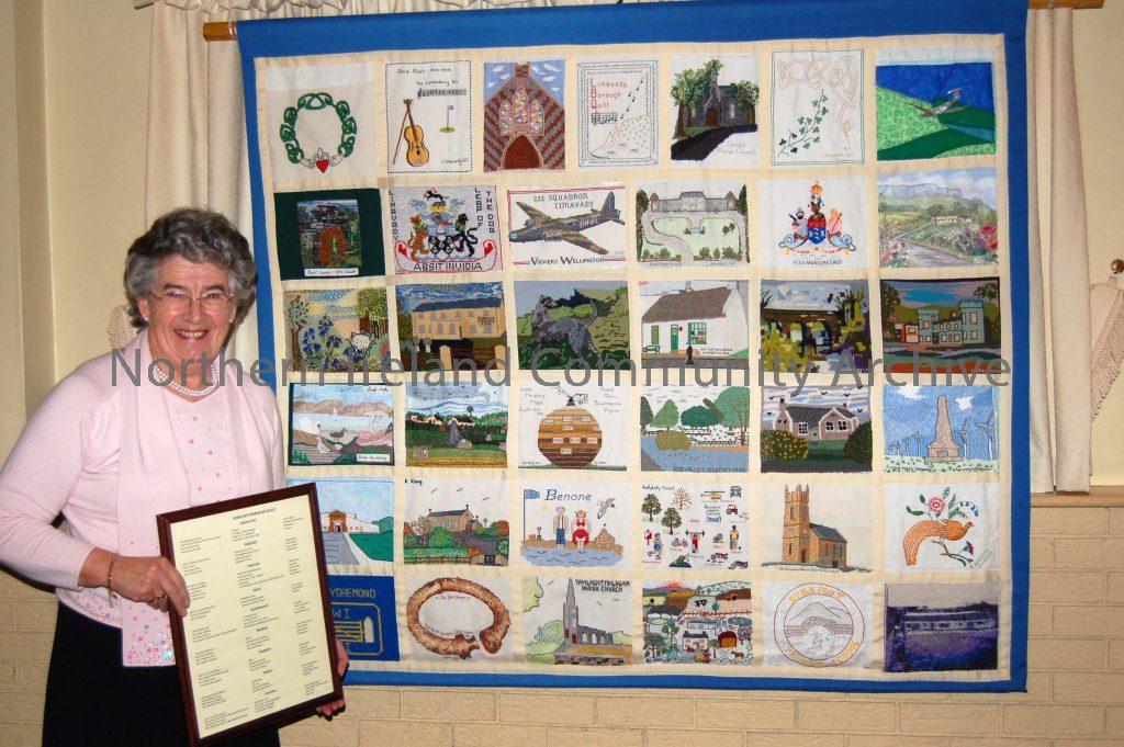 Aileen Gault, who completed the Ballykelly Clinic embroidery for the Roe Valley Women’s Institute quilt.