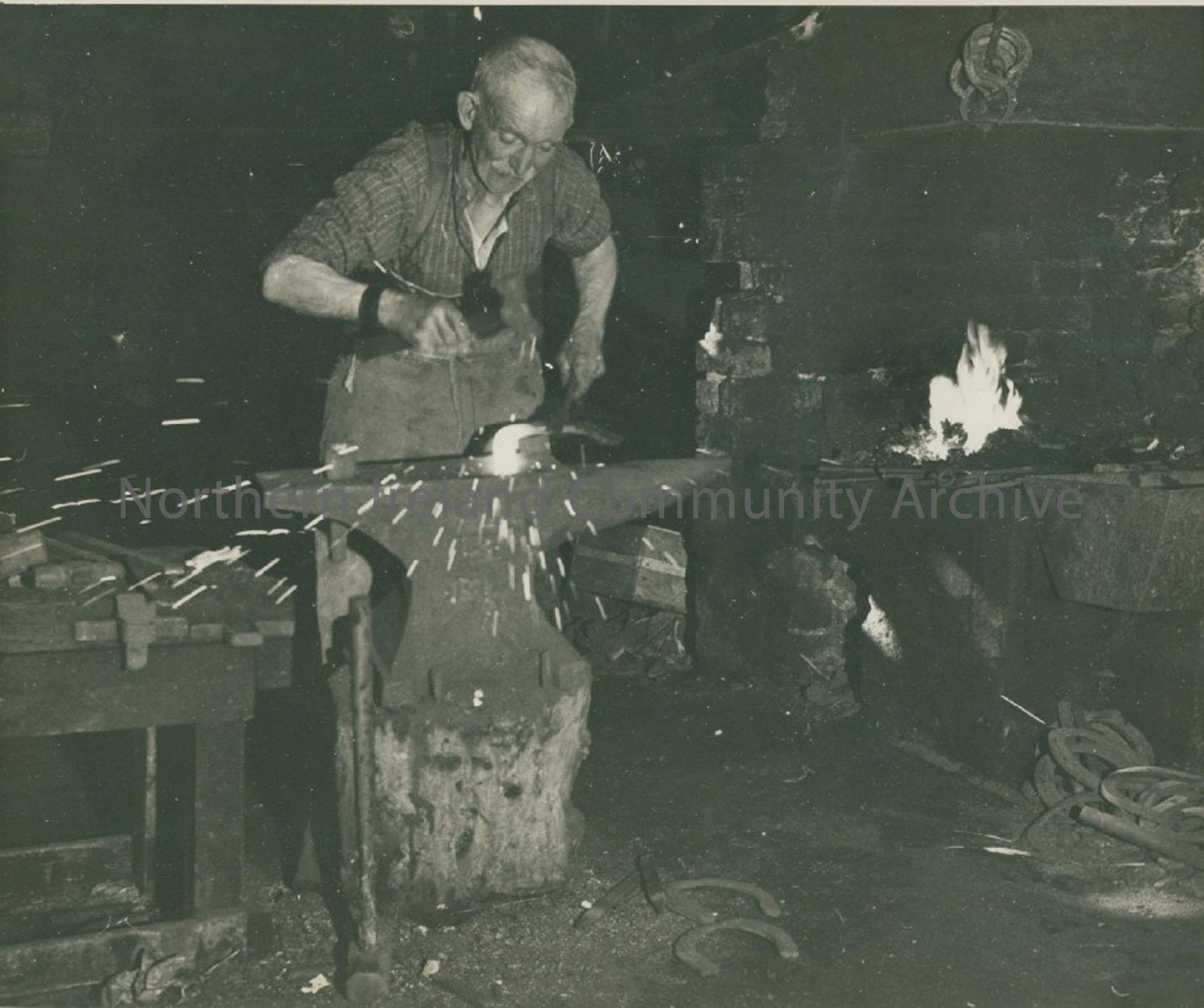 Albert McKay at work in his Blacksmith's shop on Townhead Street