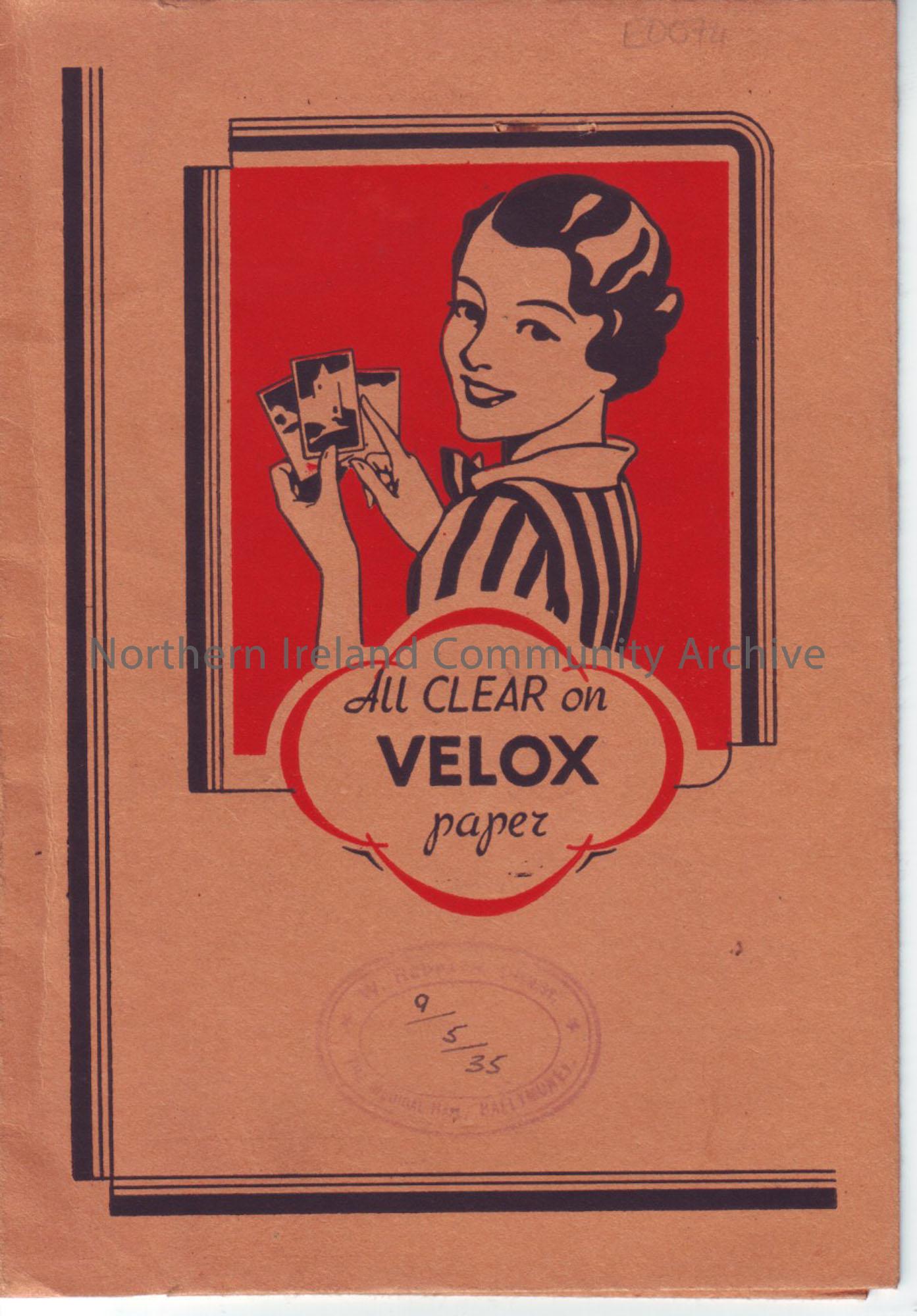 All clear on Velox paper, The medical hall Ballymoney- packet for photographs once developed. Name on back is Miss Pollock.