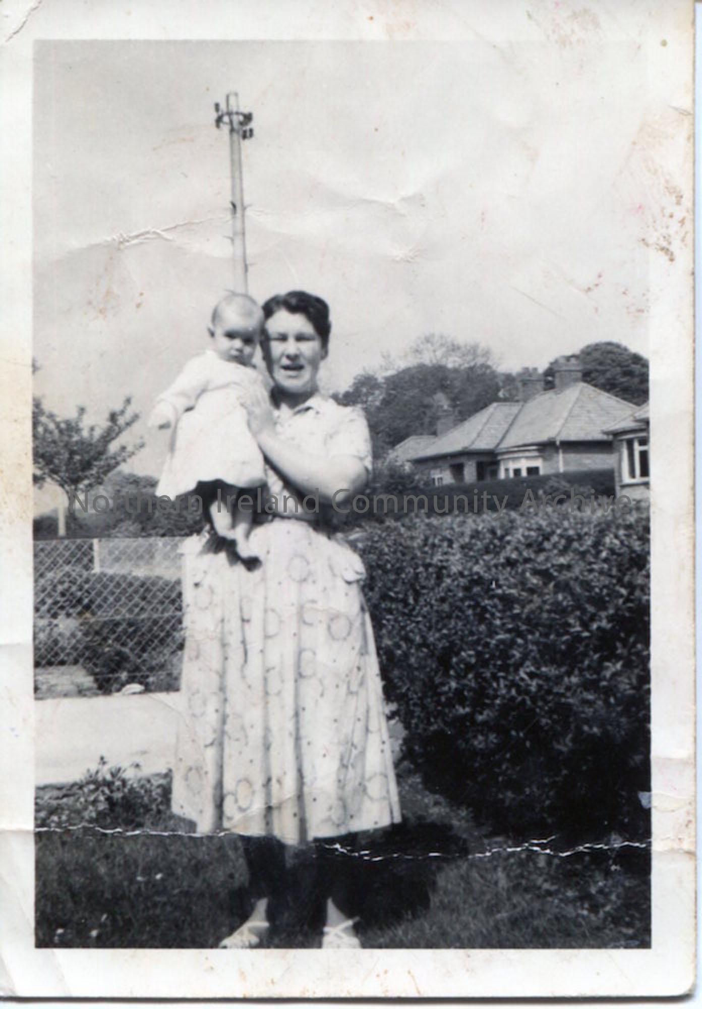 Anne Kennedy, with her mother Sadie Magee, at their home in Dunseverick, 1957