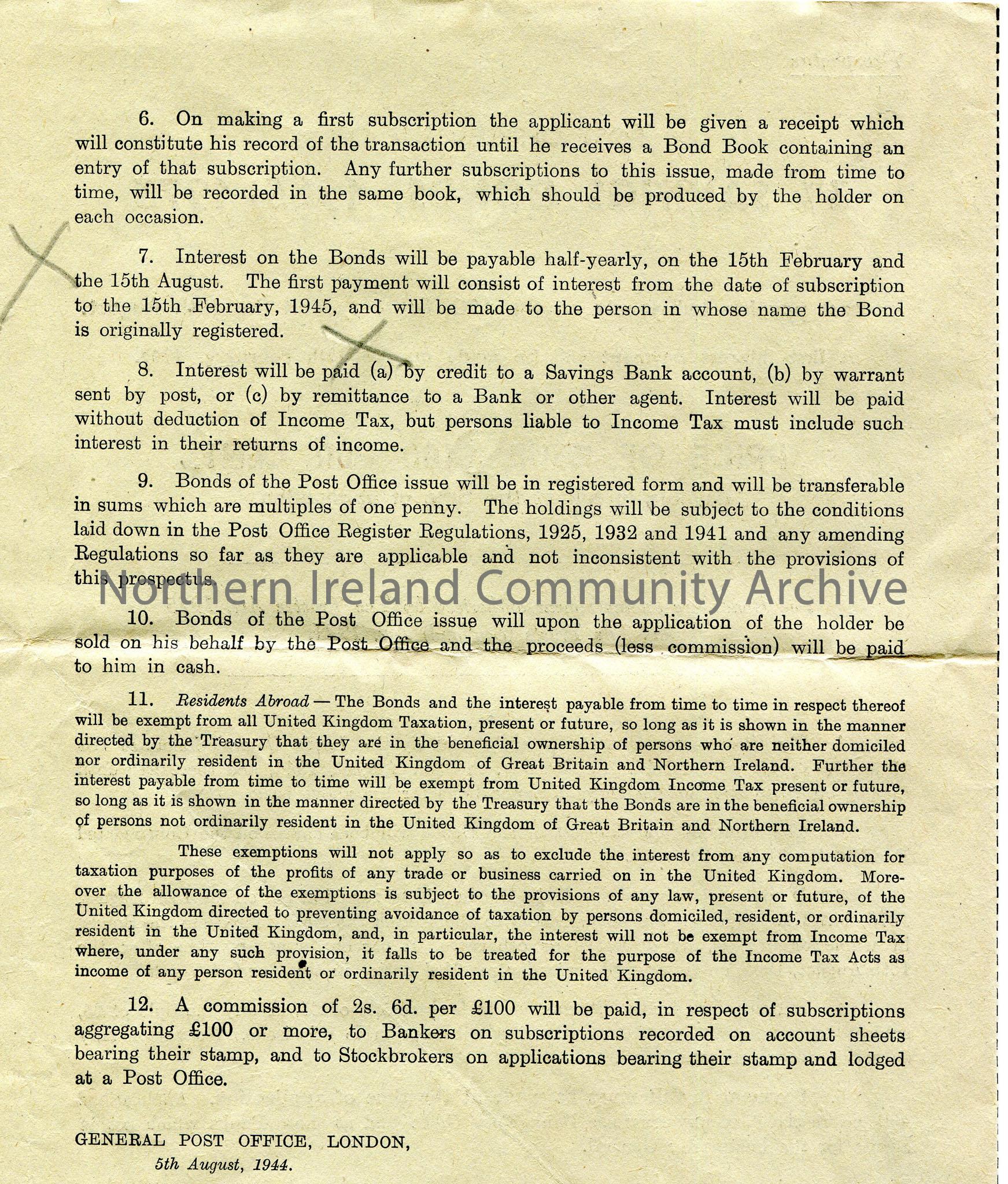 Application form, booklet, for 3% Savings Bonds 1965-1975, Post Office Issue. Stamped by Northern Bank, Portrush. ‘Series A’ handwritten on top of pag… – scan218b