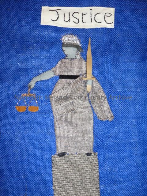 Justice for all arpillera by Teresa McKendry, Glenmona Resource Centre, Cushendall. Courtesy of Causeway Museum Service.