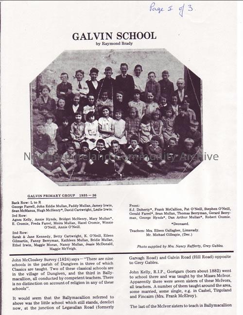 Article about Galvin School (by Raymond Brady, school principal 1959 to 1962) and the subsequent restoration of the building.