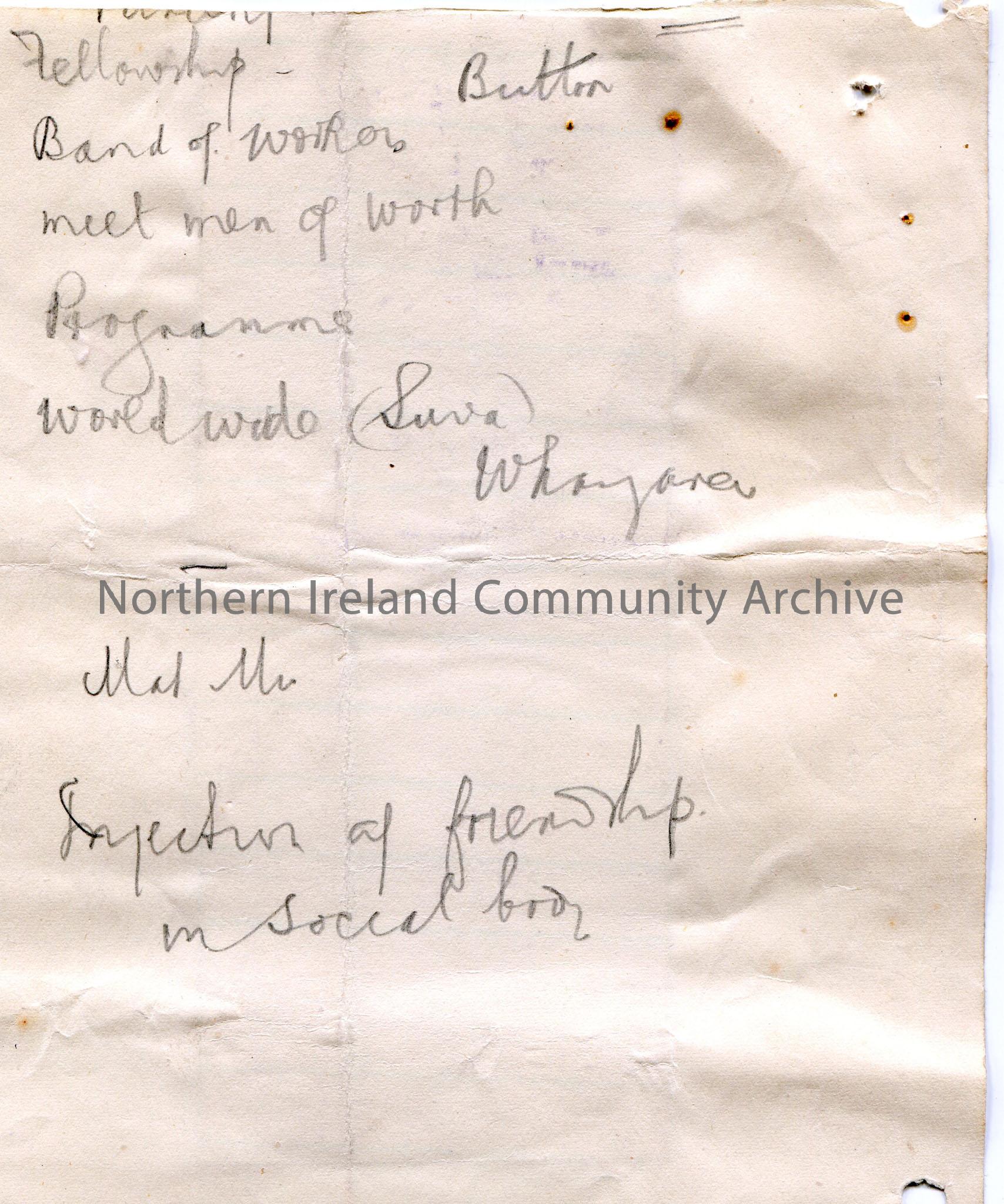 Article cut from a newspaper and stuck to page. Titled, 'The Fairy Thorn'. Re Andy M'Alister's Rookery Farm and the fairies. Rough notes in pencil on reverse, no context.