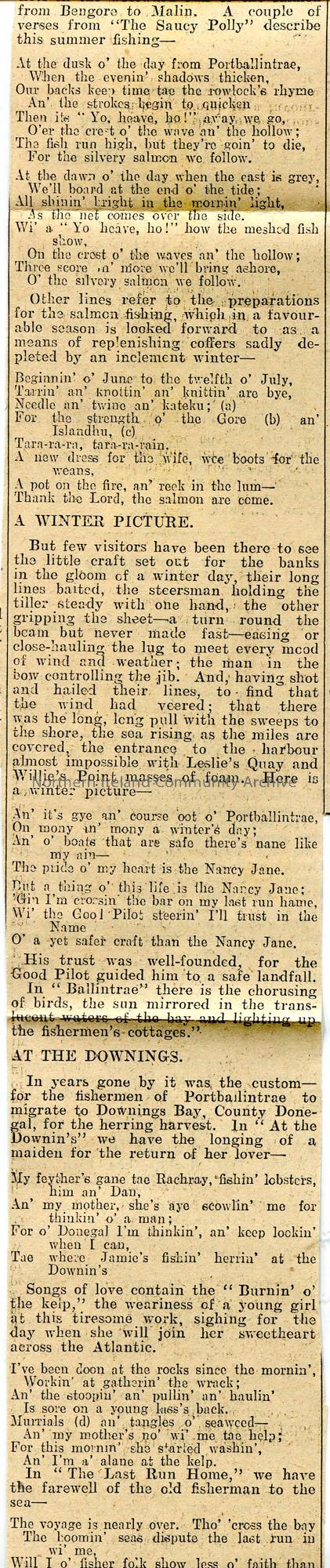 Article cut from a newspaper of a review of a book edited by Sam Henry ‘Rowlock Rhymes and Songs of Exile’. Article titled, ‘Rowlock Rhymes. An Antrim… – scan074b