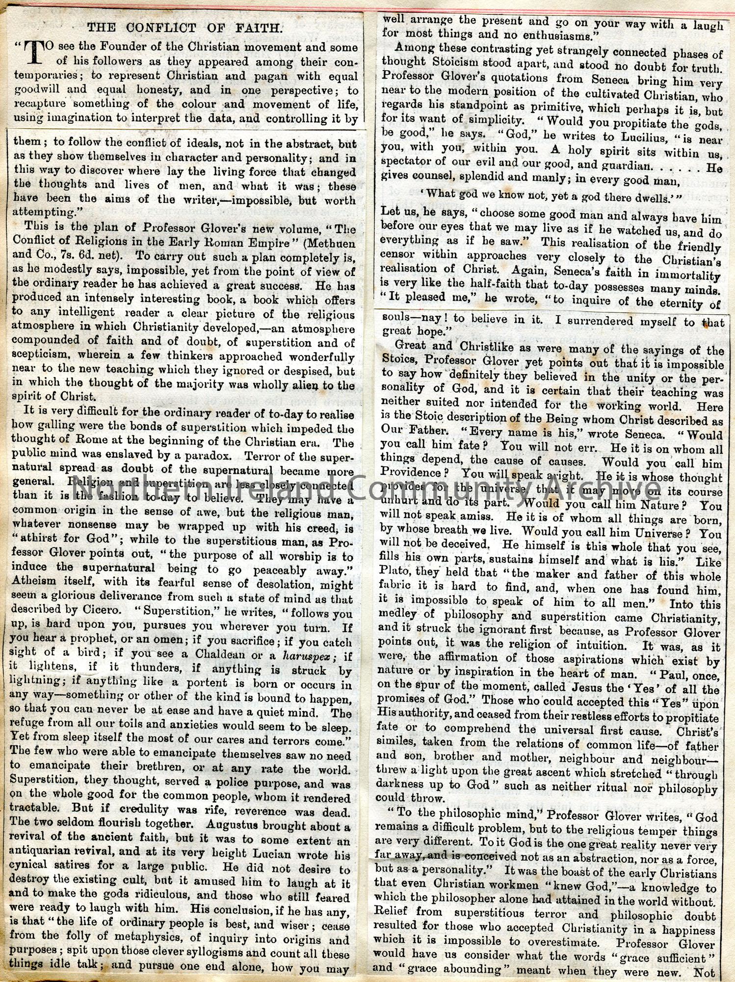 Article cut from a publication titled, 'The Conflict of Faith'.
