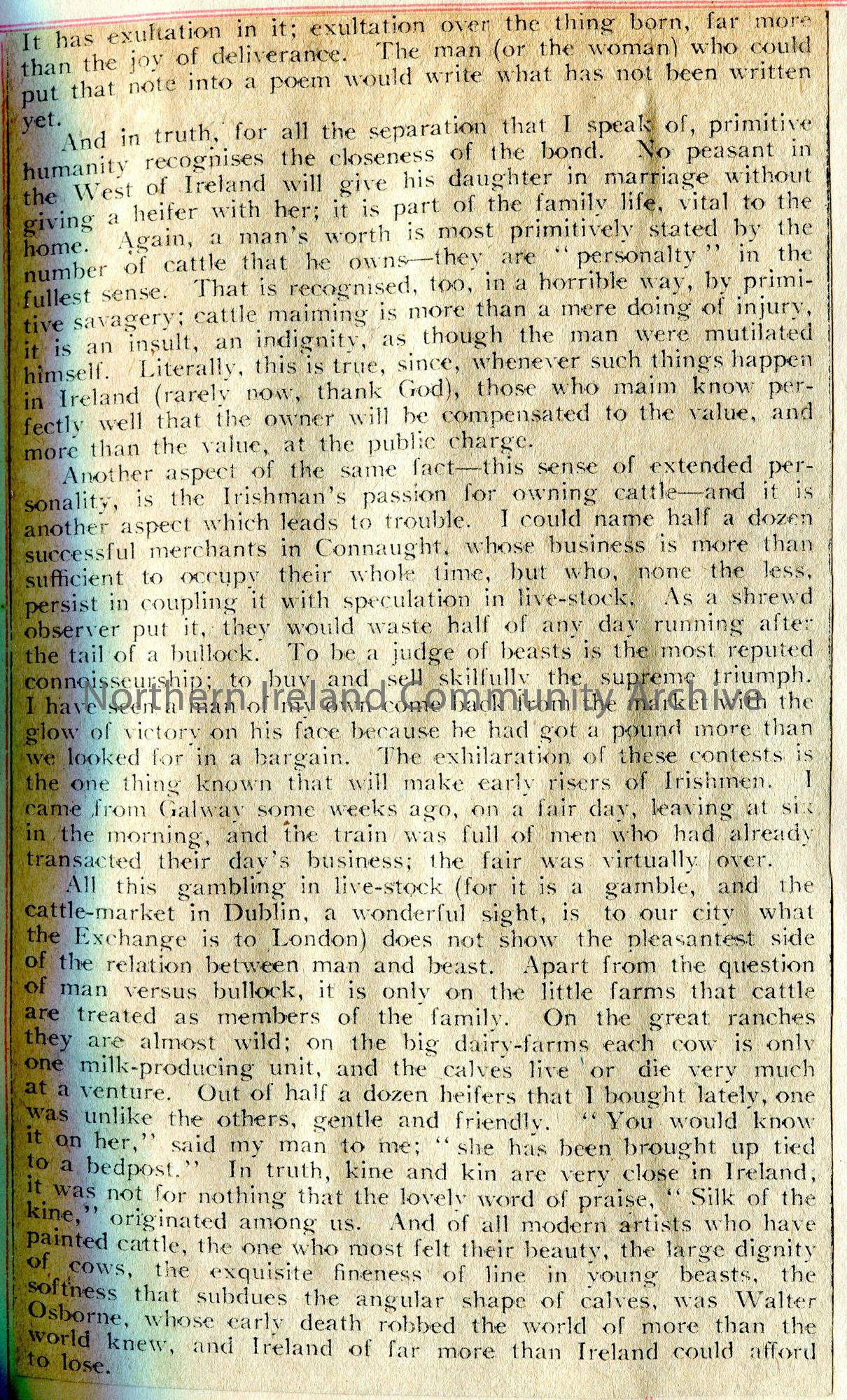 Article cut from newspaper titled, ‘About Cows’ by Stephen Gwynn. – scan027b