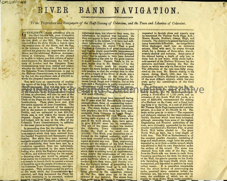 Article entitled River Bann Navigation written by W.E. Eccles, secretary, Coleraine 5th December 1878 (4548)