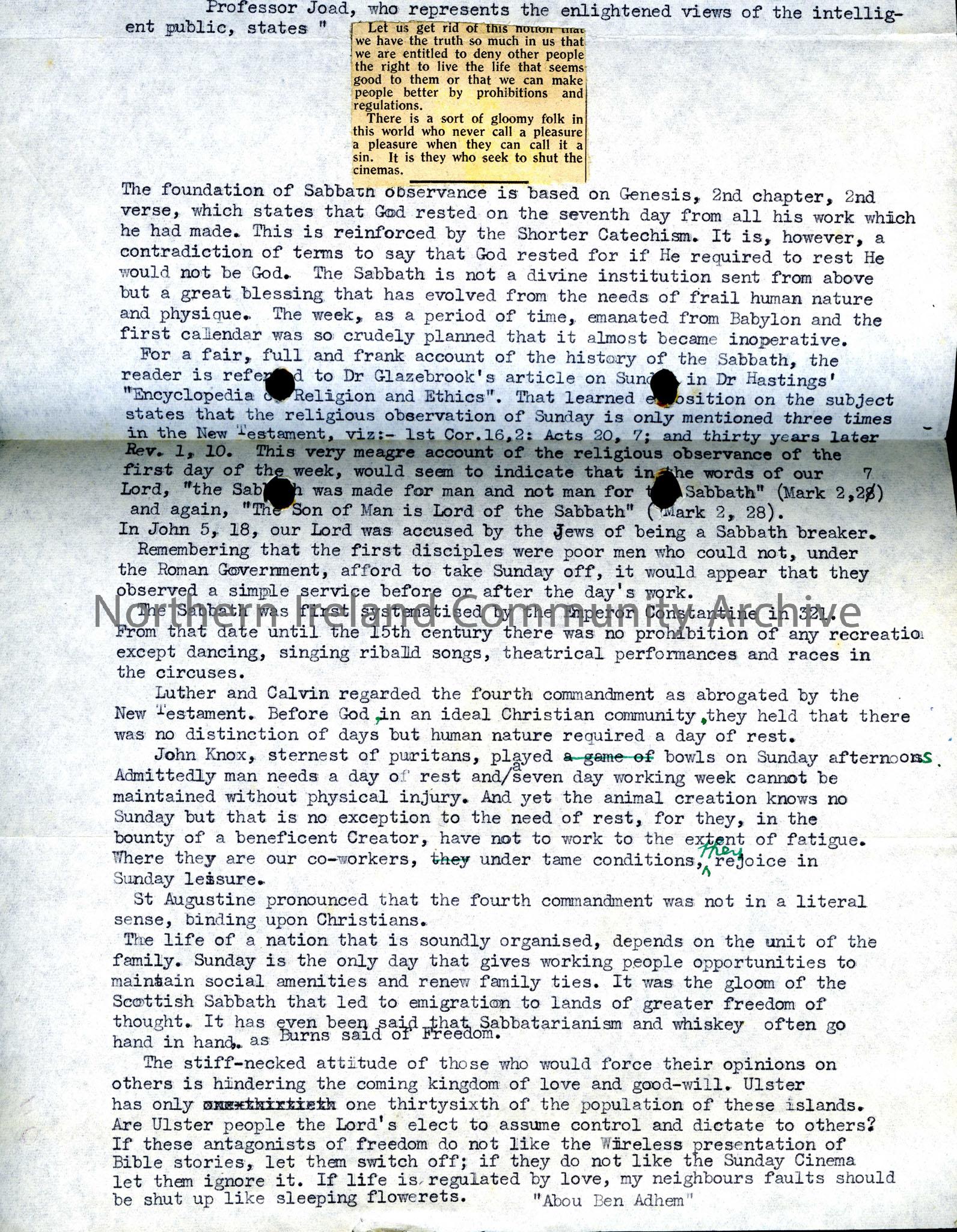 Article entitled “The Truth about Sunday” written under the pen name “Abou Ben Adhem” and discussing Sabbath observance.
