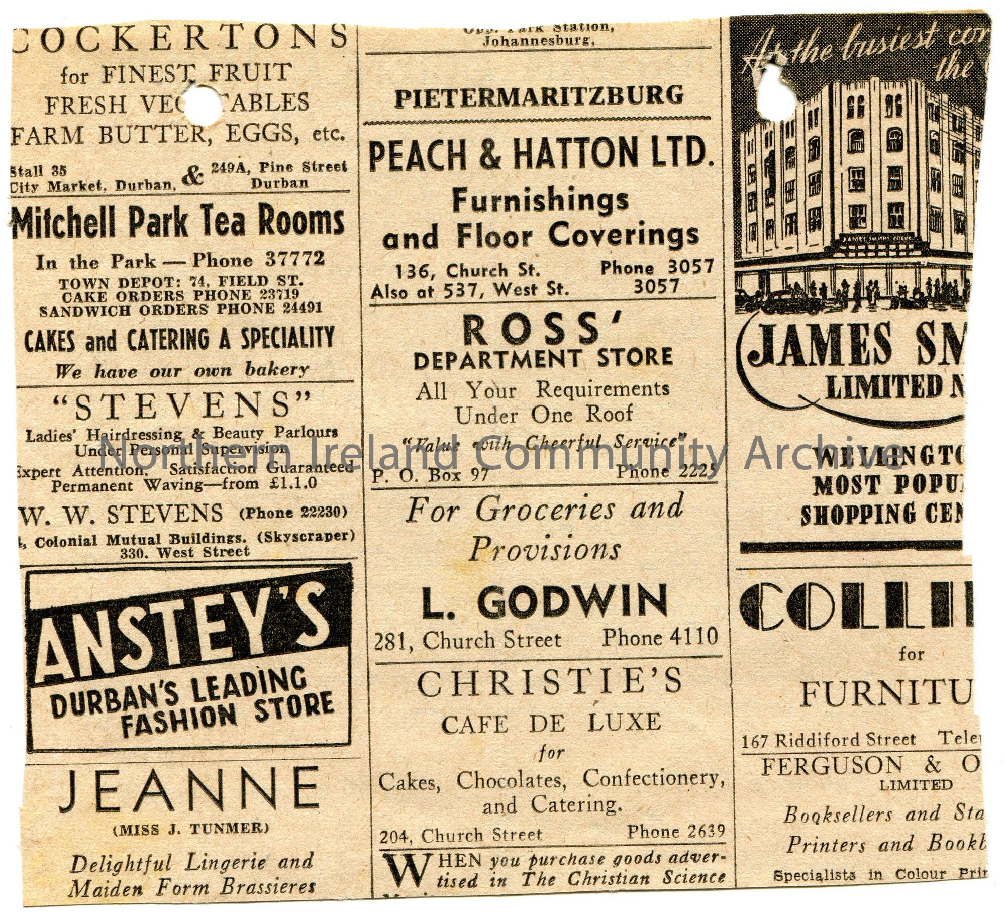 Article or advertisement cut from newspaper titled, 'The Christian Science Monitor'. An International Daily Newspaper based in Boston, Massachusetts. Advertisement on the back relate to Durban in South Africa.