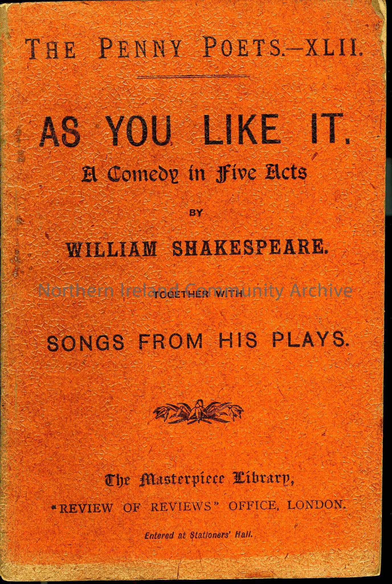 The Penny Poets Series No.XLII - As You Like It - A Comedy in Five Acts by William Shakespeare