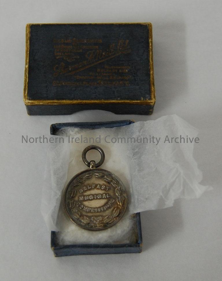 Assortment of medals from Coleraine, music festival, Londonderry feis, Belfast music festival, 11 altogether 5 in individual boxes – 2010.646 (6)