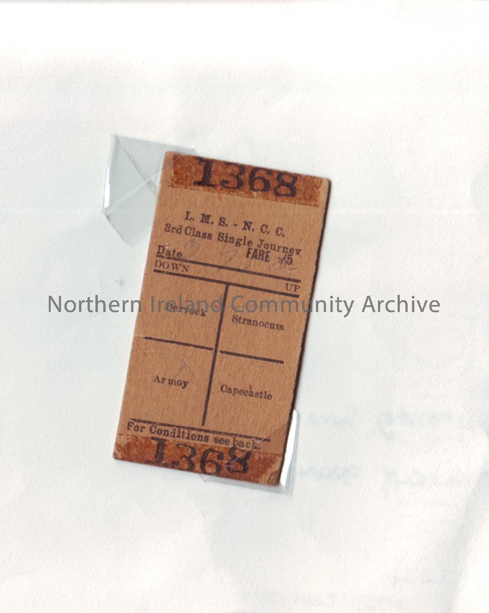 Ballycastle Narrow Gauge single ticket to Armoy
