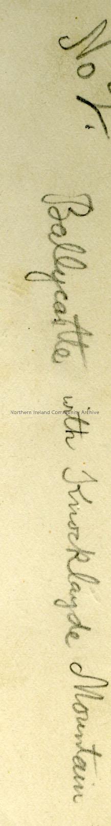 artwork titled, 'Ballycastle with Knocklayde Mountain' by Hugh Thomson. study for 'Highways and Byways in Donegall and Antrim' by Stephen Gwynn.' Possibly for page 239.