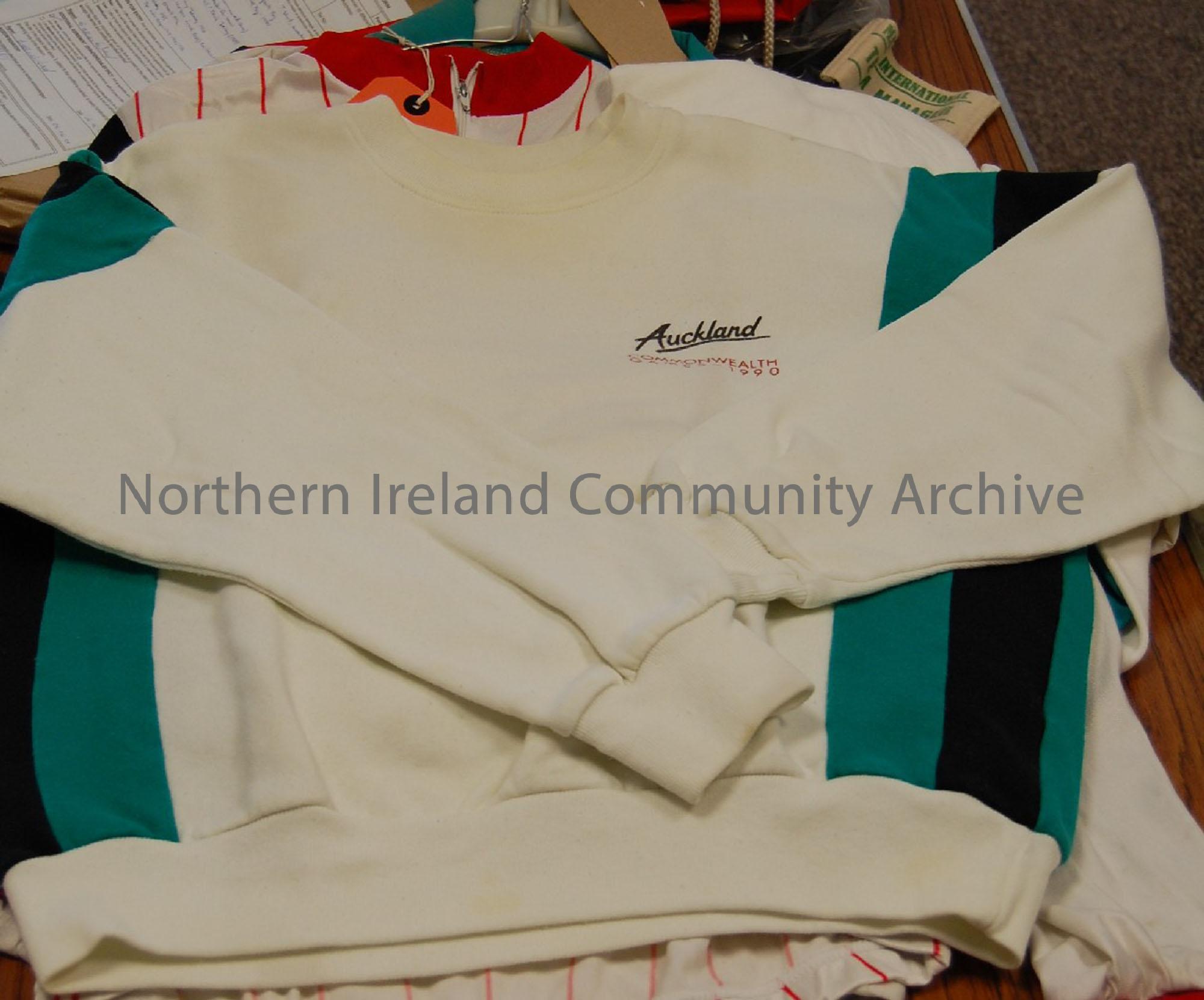Ballymoney and District Cycle Club tracksuit sweatshirt. Worn during Commonwealth Games, 1990.