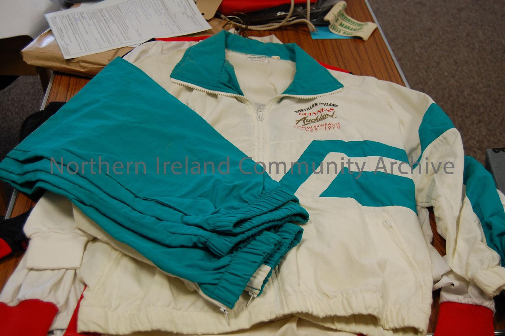 Ballymoney and District Cycle Club tracksuit top. Part of complete tracksuit worn by Wallace McNaul during the Commonwealth Games in New Zealand, 1990…