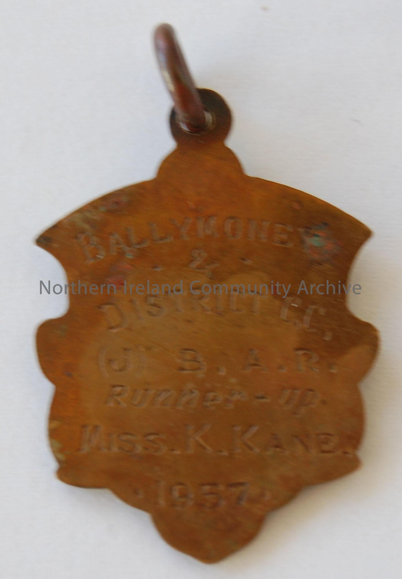Ballymoney and District Cycling Club, runner up medal awarded to Miss K.Kane 1957