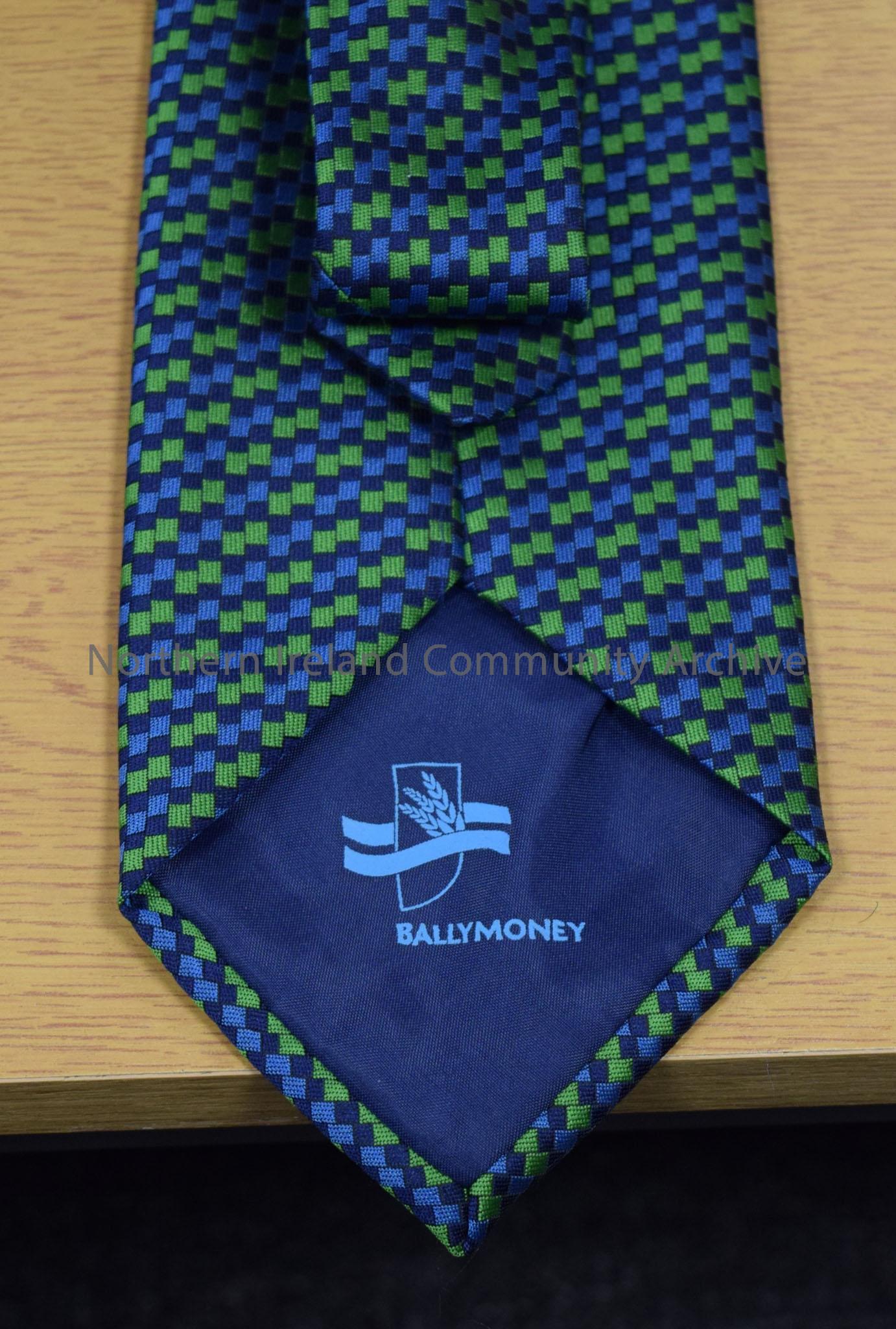 Ballymoney Borough Council tie. Small blue, navy blue and green squares pattern. – 2016.193 (2)