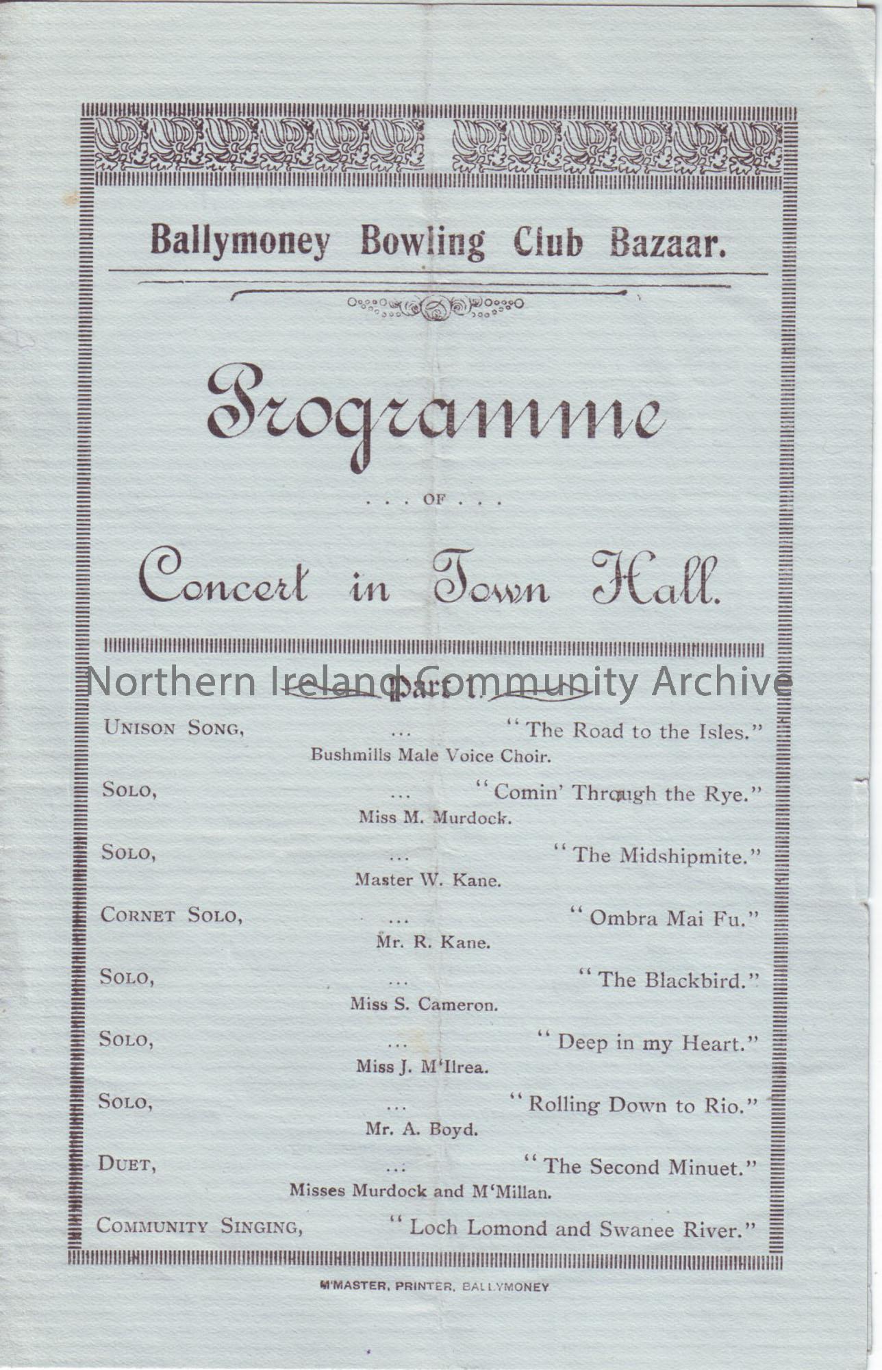 Ballymoney Bowling Club bazaar concert in Town Hall