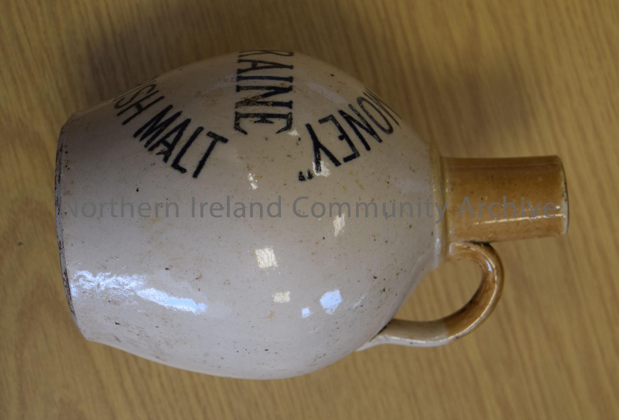 “Ballymoney” Coleraine Finest Irish Malt. Light brown stoneware whisky jug. – 2015.46