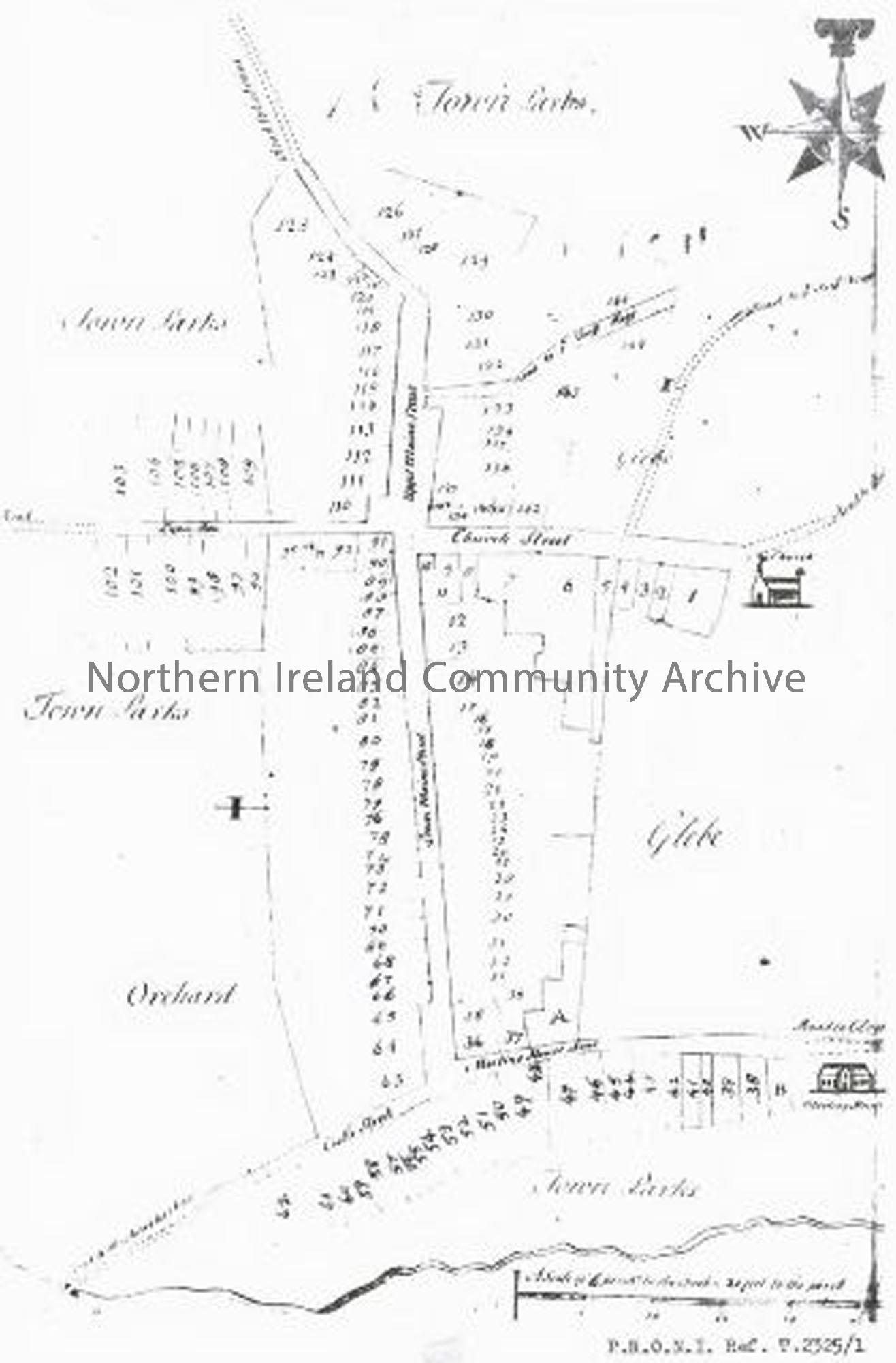 Map of Ballymoney by Archibald Stewart, 1734 (PRONI T2325-1)