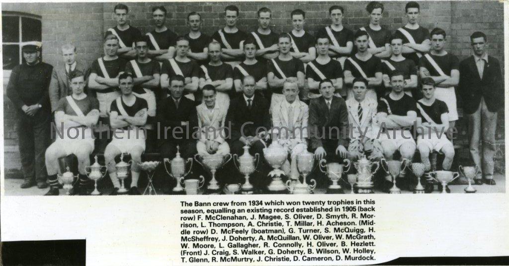 Bann Rowing Club, Coleraine, 1934, won twenty trophies in the season, equalling an existing record established in 1905.