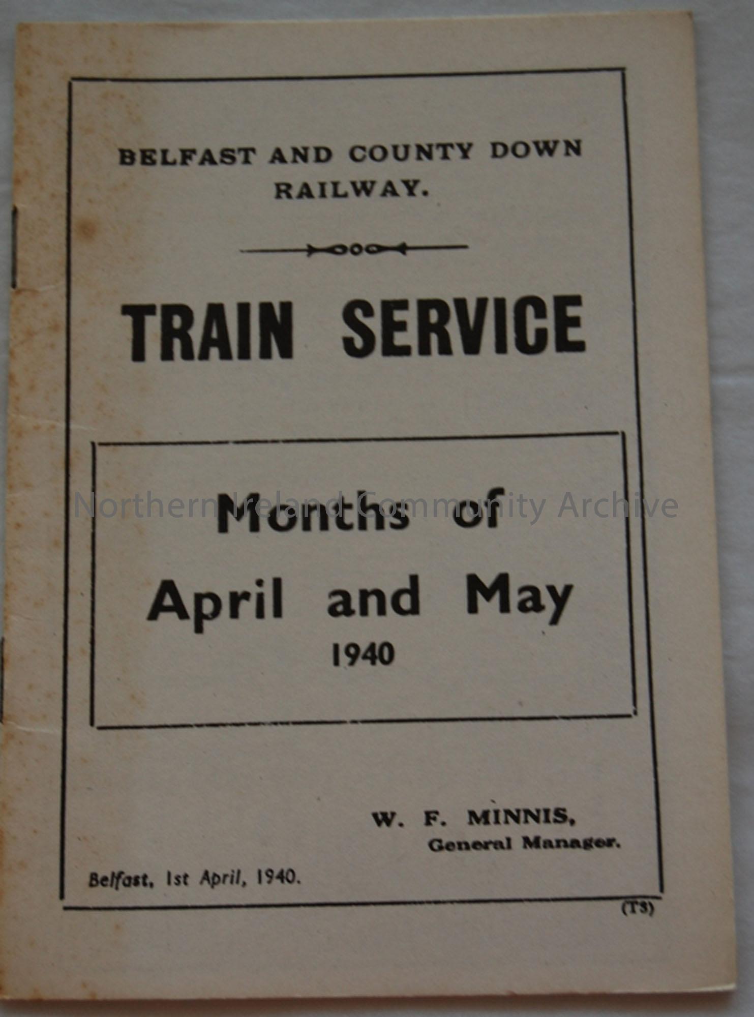 Belfast and County Down Railway Train service timetable for the months of April and May, 1940